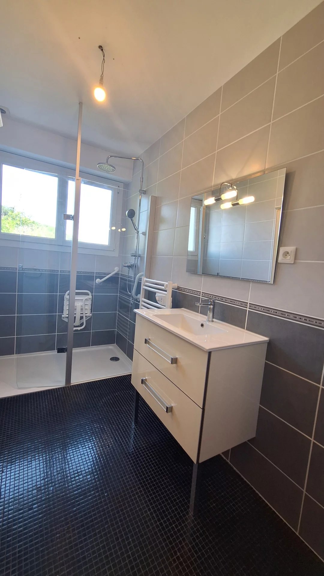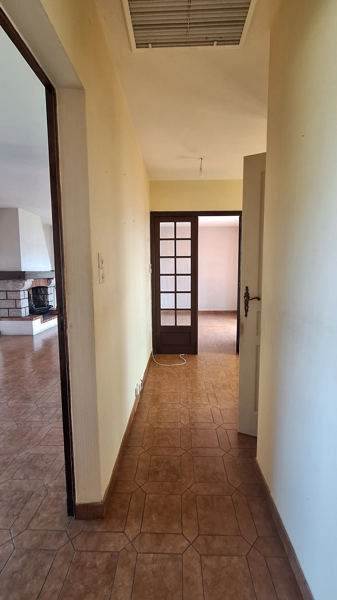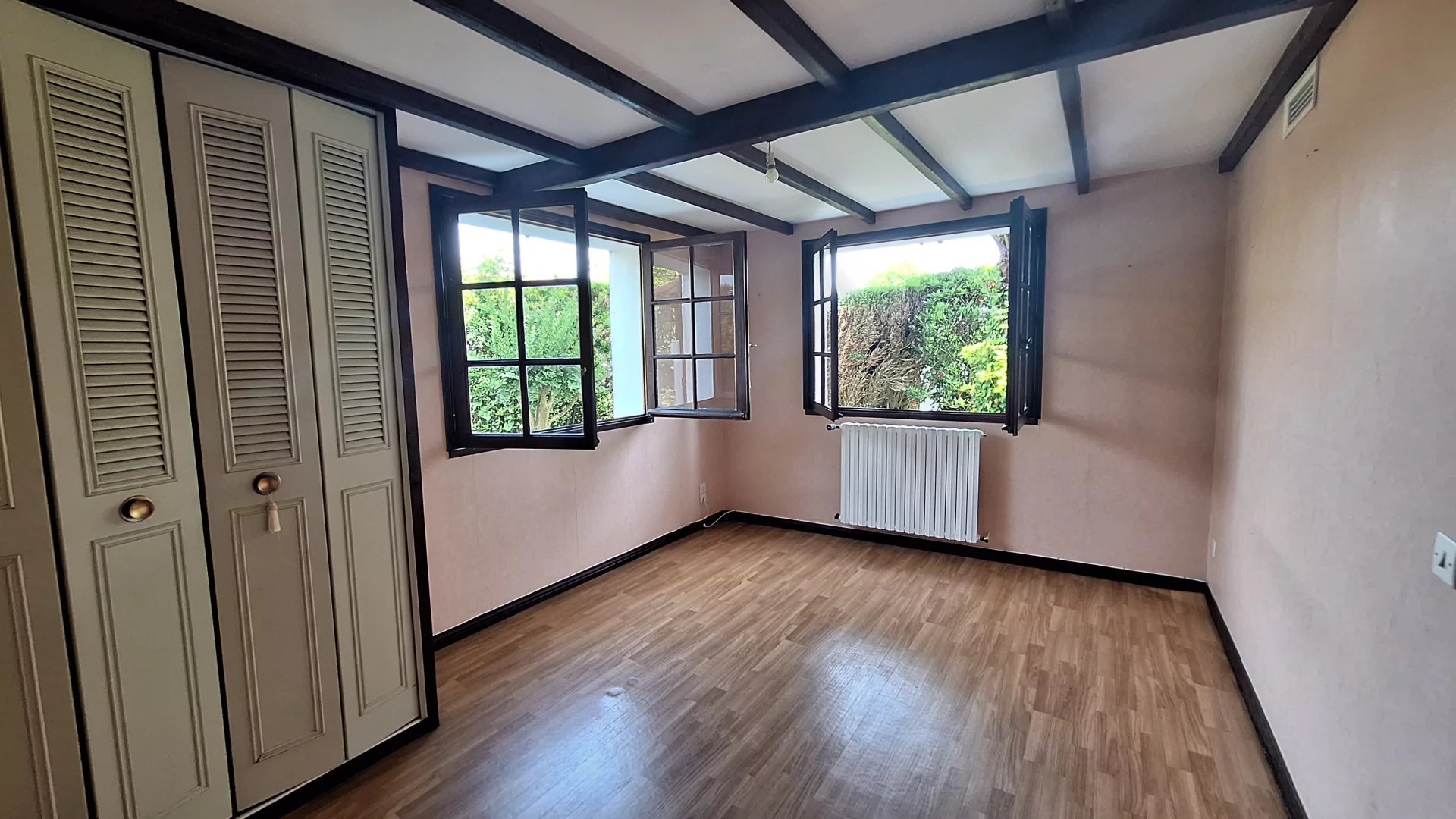 - A l'étage une entrée, un séjour d'environ 30 m² avec cheminée, une cuisine d'environ 9 m², deux chambres d'environ 10 m², un dégagement d'environ 5 m², une salle d'eau d'environ 5 m² et un WC séparé.