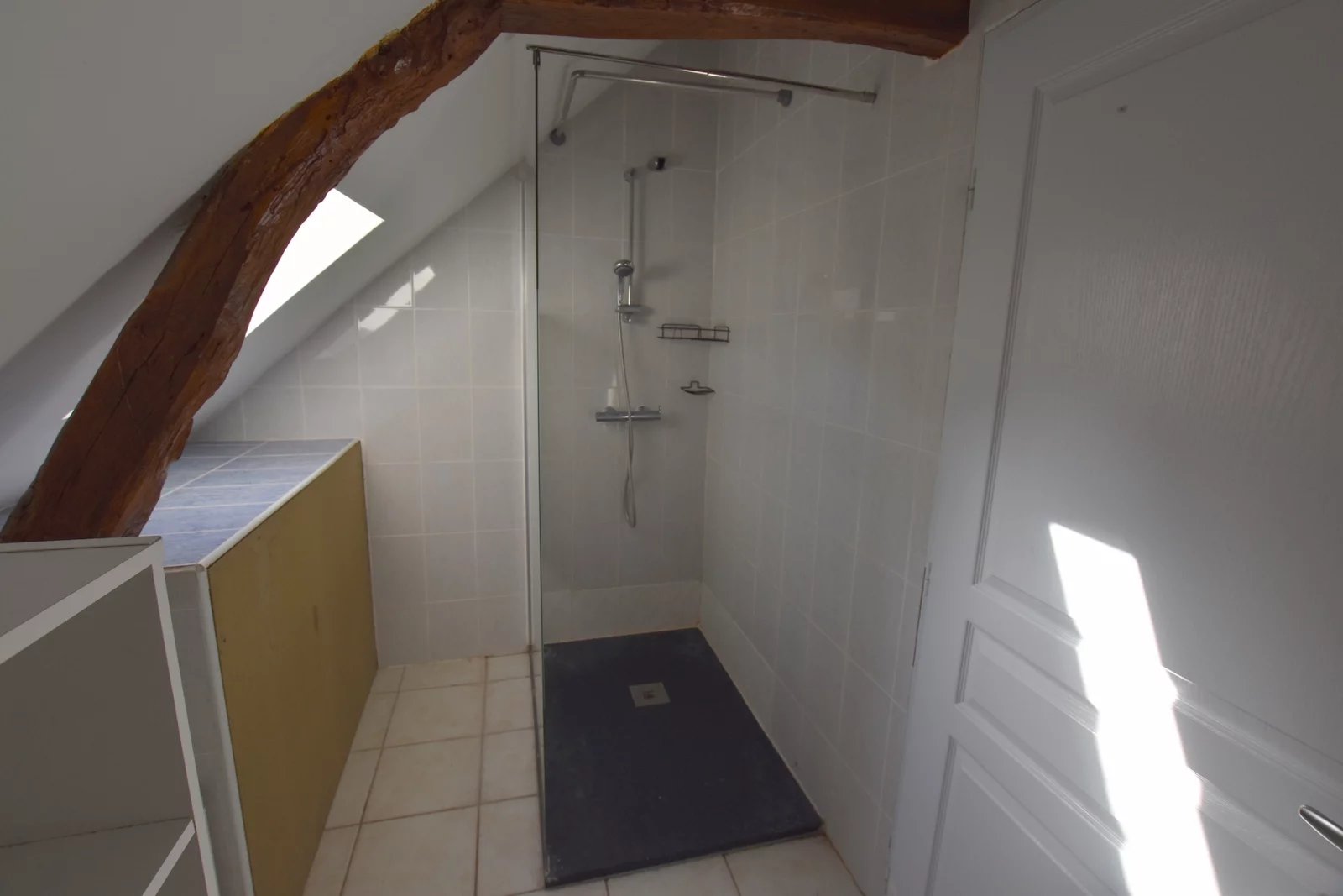 Une pièce, une salle d’eau et toilettes à l’étage ainsi qu’un espace salon.