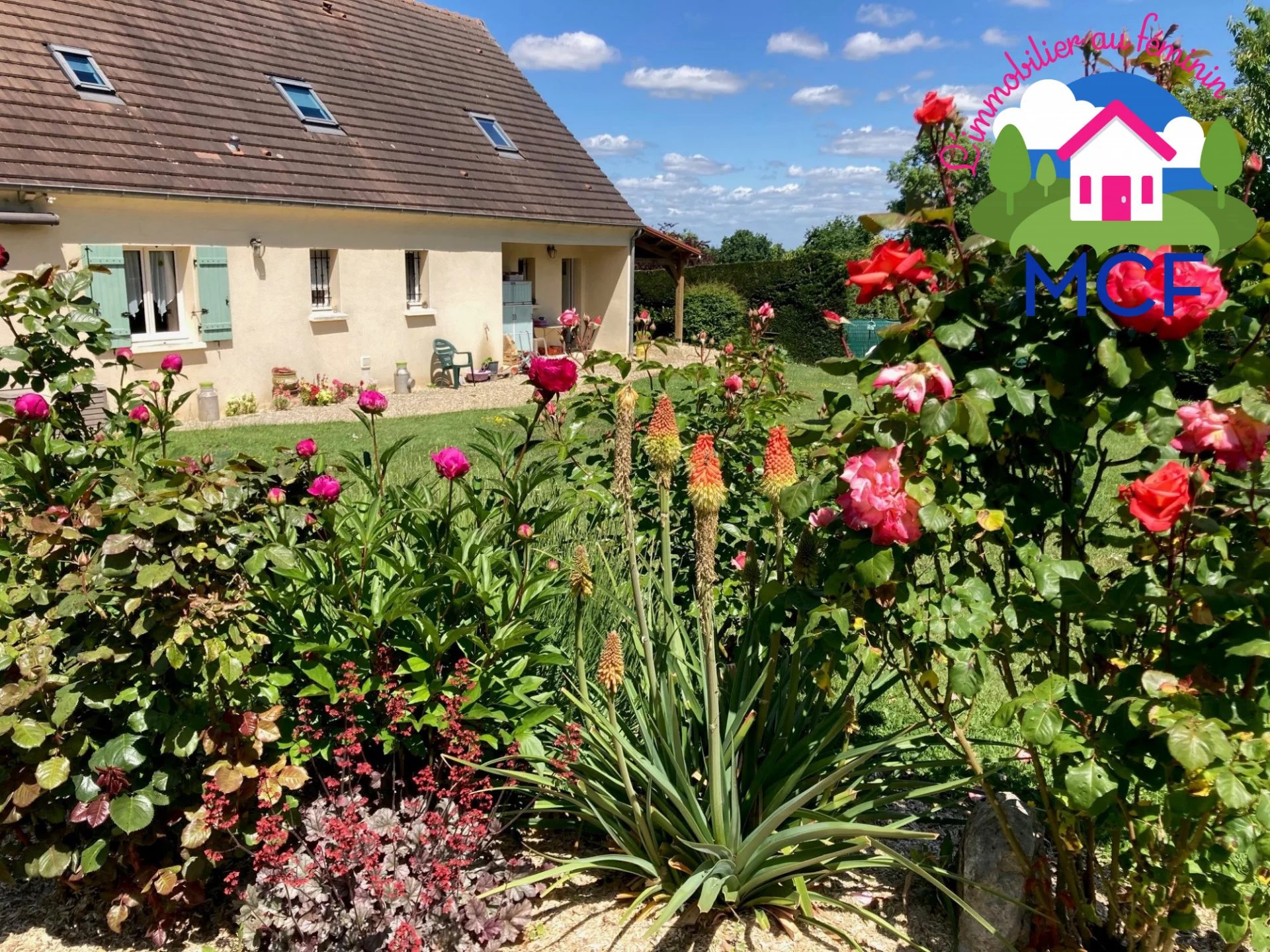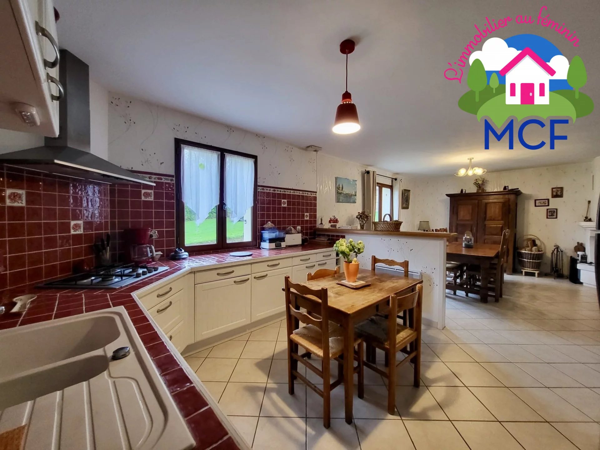 Entrée, espace de vie avec cheminée insert, cuisine us aménagée équipée avec cellier / buanderie, chambre avec placard, salle d'eau avec wc, wc indépendant,