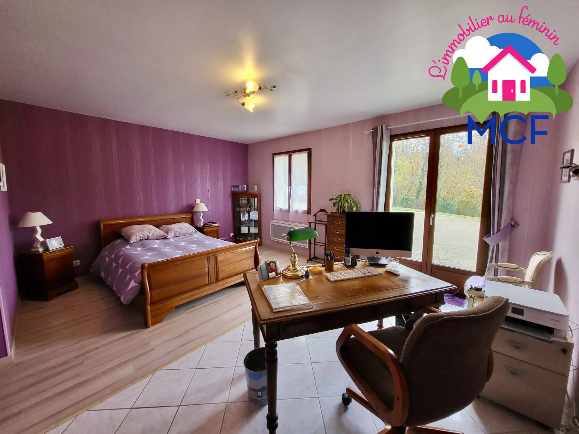 A l'étage : palier desservant trois chambres dont une suite parentale avec salle d'eau et wc, salle de bains, wc indépendant.