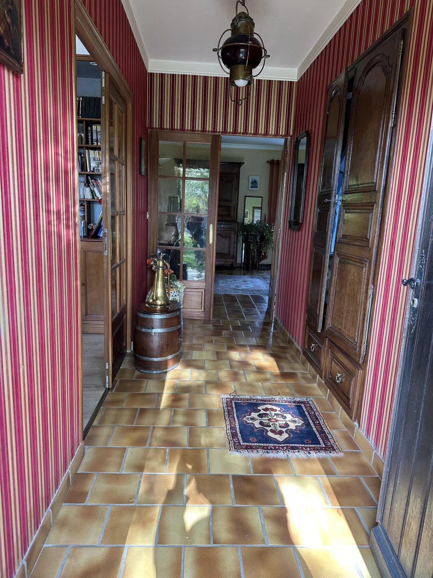 Au sous-sol, se trouve une buanderie, un grand garage, atelier, toilettes, cave et trois boxes.
