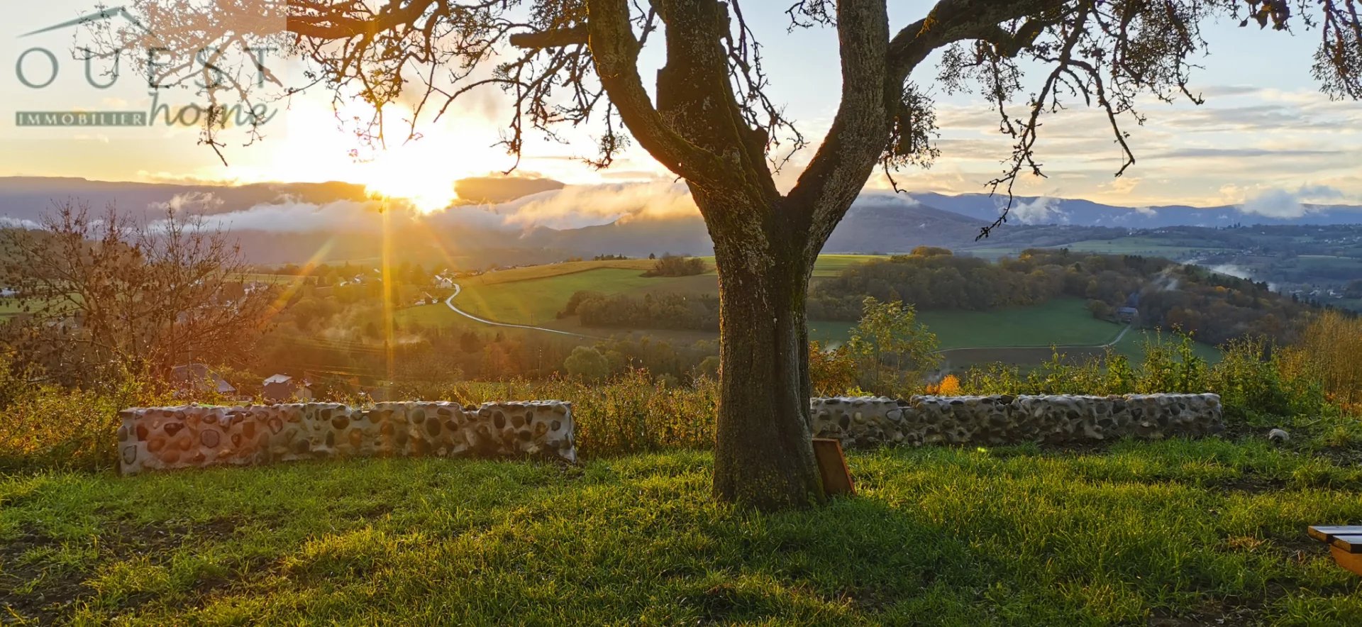 Ferme de 1880 en pisé à rénover, à proximité d'Annecy et aéroport de Genève (40 minutes) cette dernière est indépendante, sans vis-à-vis (entourée de terrains agricoles protègés), proposée avec un permis de construire accordé et purgé pour 280 m2 habitables. Elle est orientée Sud-Ouest, charpente en bon état, très beaux volumes, vue à 160 degrés sur l'Albanais du Salève au Sallenôves ; est annexé 1 ha 6 de terrains agricoles, dont 2 000 m2 en zone agricole constructive. Dans le cadre du permis, l'intérieur n'est pas arrêté sur plans définitifs : l'ensemble est pensé comme un aménagement très ouvert, évolutif et adaptable au bâti existant. (A titre indicatif, ce dernier peut vous être communiqué.) Les menuiseries sont en gris anthracite, volets roulants intérieurs de même ton, et couverture de toiture en terre plate anthracite. Est également prévue la construction d'une terrasse d'agrément attenante au jardin et d'un accès véhicule en sous-sol avec une rampe d'accès discrète sur la façade principale. Complètent ce projet 2 garages et 5 places de parking extérieurs.