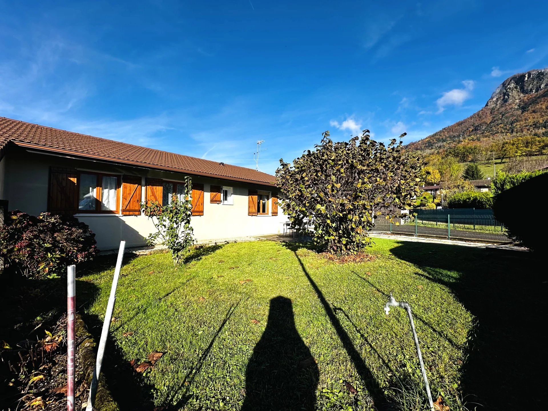 À vendre, belle maison PHENIX de plain-pied construite en 1979, située dans un secteur calme et recherché de Thyez, sur un terrain plat, clos et arboré de 515 m². C'est une maison mitoyenne uniquement par le garage.