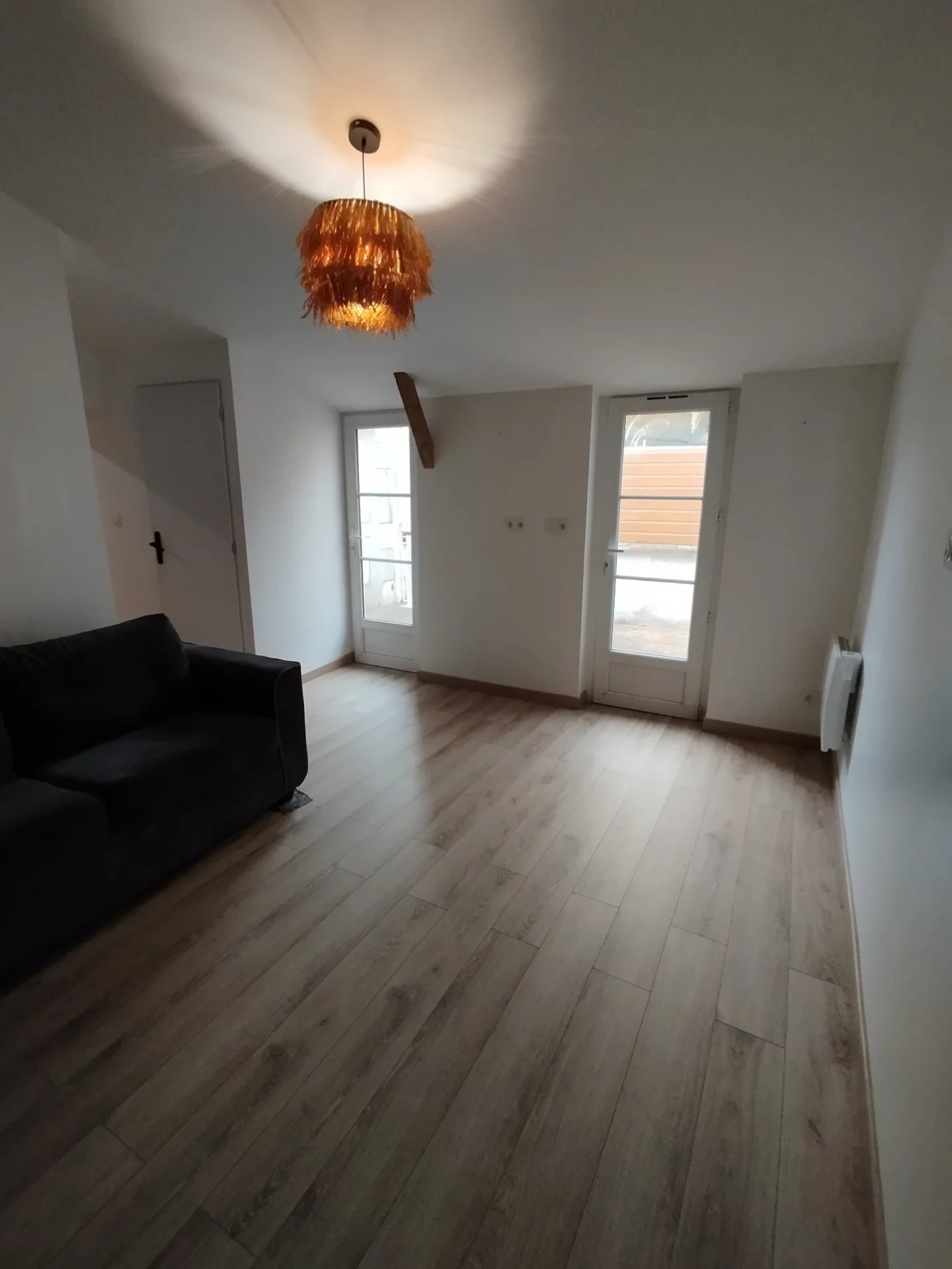 - Salon lumineux offrant un accès direct à une cour extérieure, parfaite pour profiter des beaux jours.