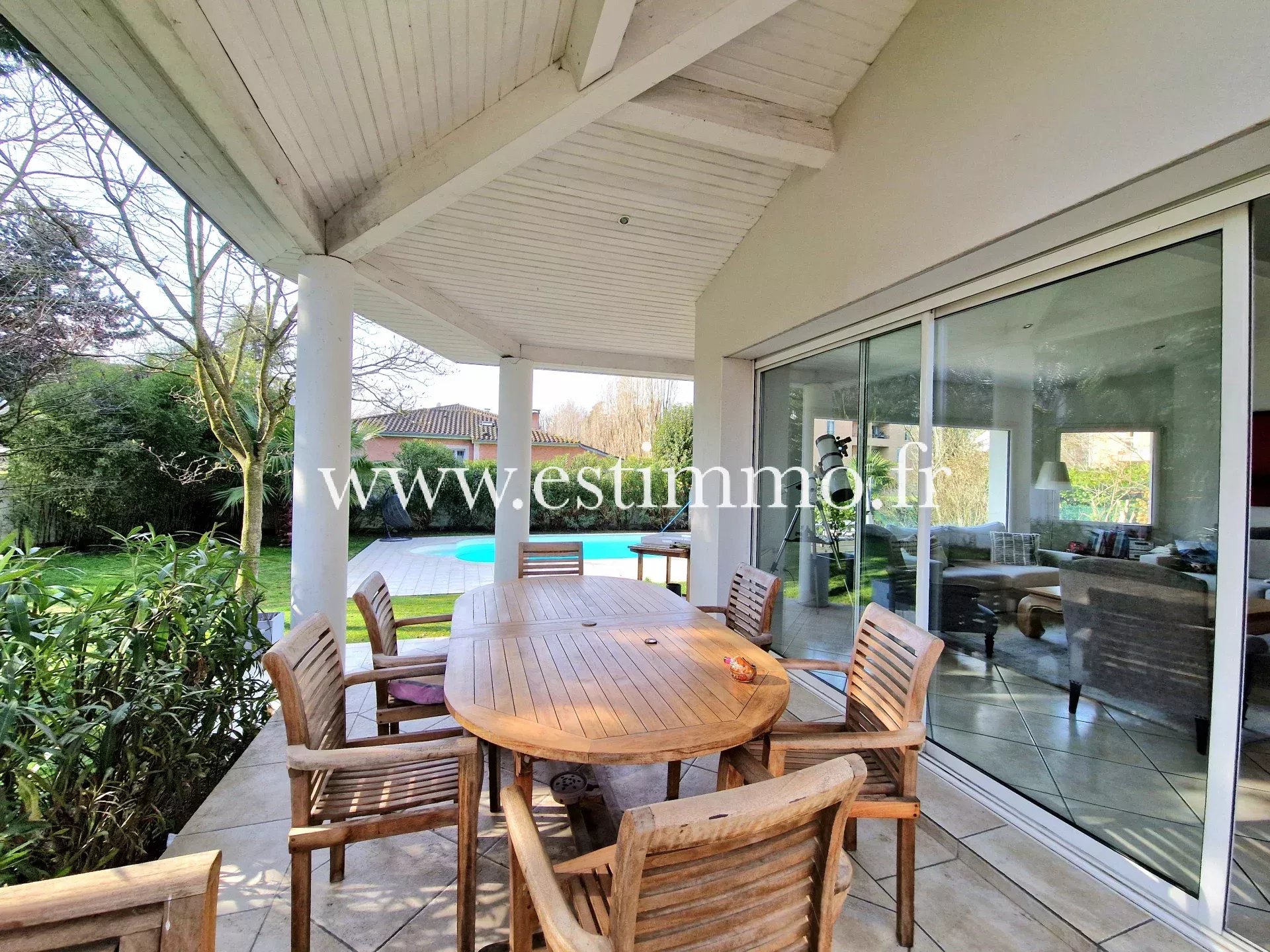 Toulouse Côte Pavée, quartier de l'Ormeau , à pied de ses commerces et de la future station de métro, harmonieuse villa de 264 m2 sur une vaste parcelle de plus de 1000 m2 avec piscine. Entièrement rénovée elle se compose d'une entrée, un grand salon lumineux avec cheminée exposé sud, dont les larges fenêtres offrent un panorama complet sur le jardin, une cuisine équipée donnant sur une agréable terrasse, un spacieux salon TV, deux chambres avec chacune son dressing et sa salle d'eau. A l'étage, quatre chambres, une salle de bains et deux salles d'eaux. En annexe une lingerie, un grand cellier, un garage pour deux voitures et possibilité de stationner quatre véhicules sur la parcelle. ESTIMMO 0561544305.www.estimmo.fr