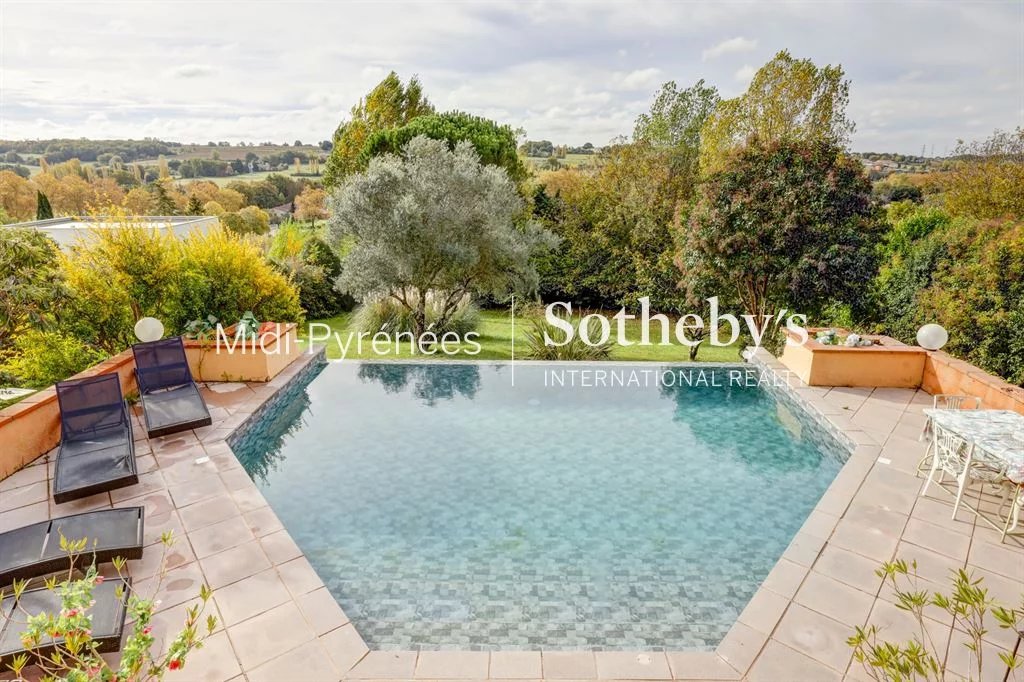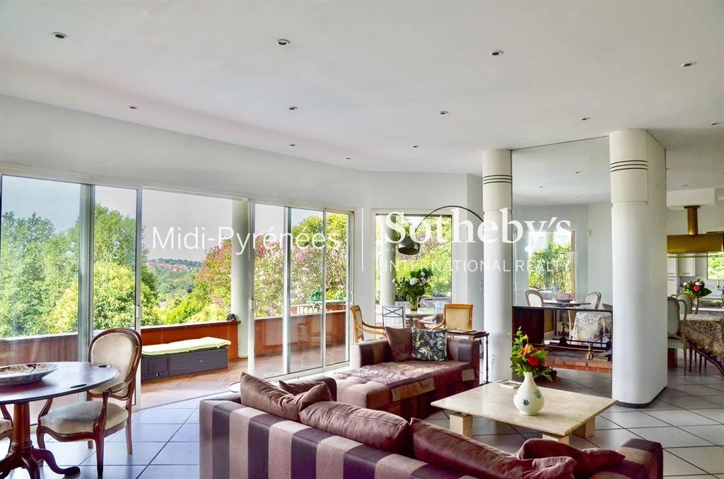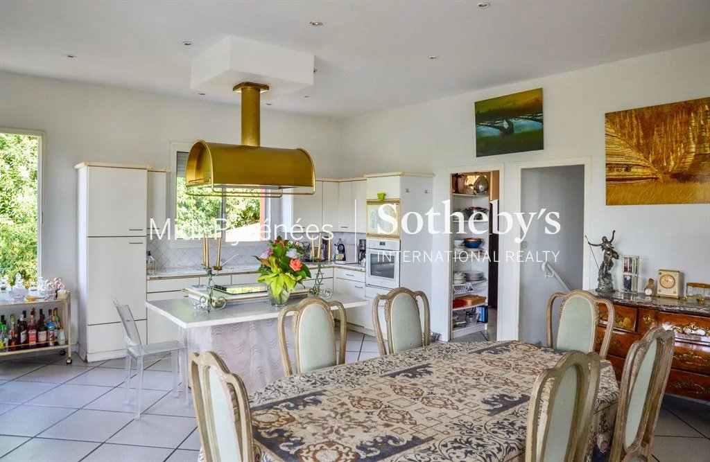 749 000 €À vendre : Propriété dexception à Beaupuy, à seulement 20 minutes de Toulouse - Détails de la propriété : -Maison principale : 215 m² - Studio indépendant : 25 m - Appartement T3 indépendant : 68 m² - Deux grands garages : 96 m² et 66 m² - Offrez-vous un véritable havre de paix avec cette propriété, idéalement située sur une parcelle joliment arborée de plus de 3000 m². Nichée dans un cadre paisible, sans vis-à-vis, cette spacieuse maison darchitecte atypique surplombe le jardin et la piscine tout en offrant une vue remarquable sur la campagne environnante vous invitant à la sérénité. Baignée de lumière grâce à de larges baies vitrées et une exposition plein sud, elle offre des espaces de vie aux volumes généreux. Le séjour de 72m2 et la suite parentale souvrent sur la grande terrasse constituant un véritable espace de vie extérieur. Vous disposerez de trois chambres supplémentaires (dont deux avec salle deau privative), dune lingerie et dune arrière cuisine. Le studio et lappartement T3, entièrement rénovés et indépendants offrent de nombreuses possibilités: Accueillir confortablement votre famille et vos amis, les louer tout en préservant votre intimité... Bien atypique et rare sur le secteur, à découvrir sans tarder ! Merci de contacter : Midi-Pyrénées Sothebys International Realty au 05 34 67 92 46 Ref : AS3-5829