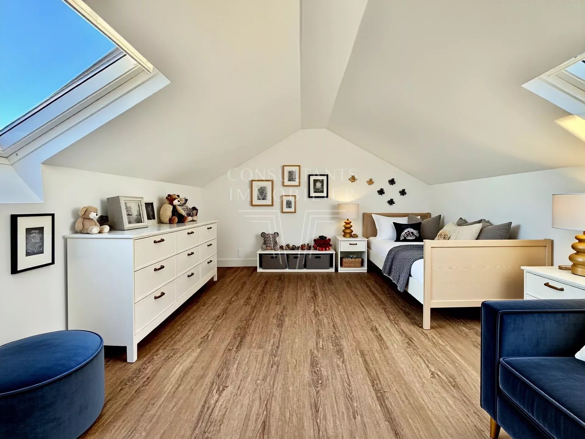 Au 1er étage, 2 chambres et une salle de douche avec toilettes.
