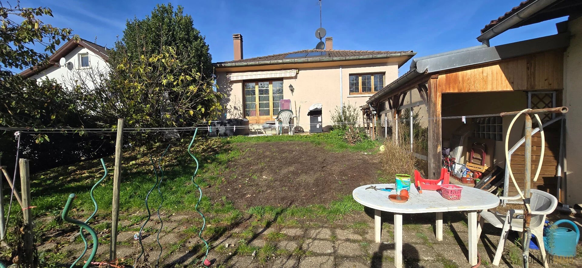 À l'extérieur, un second garage double en enfilade d'environ 35 m² vient compléter l'ensemble.