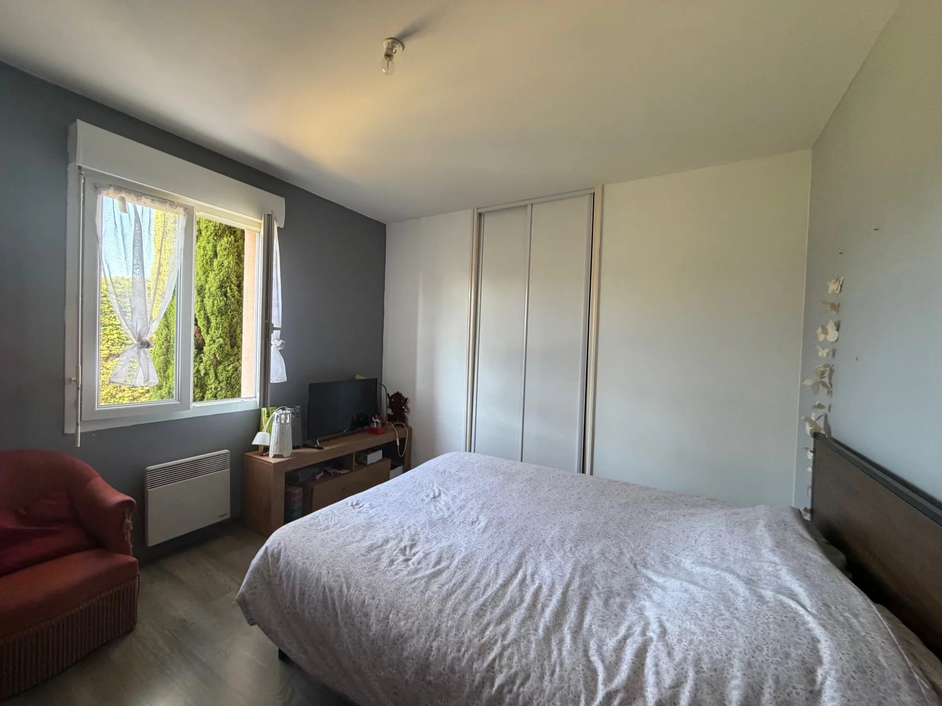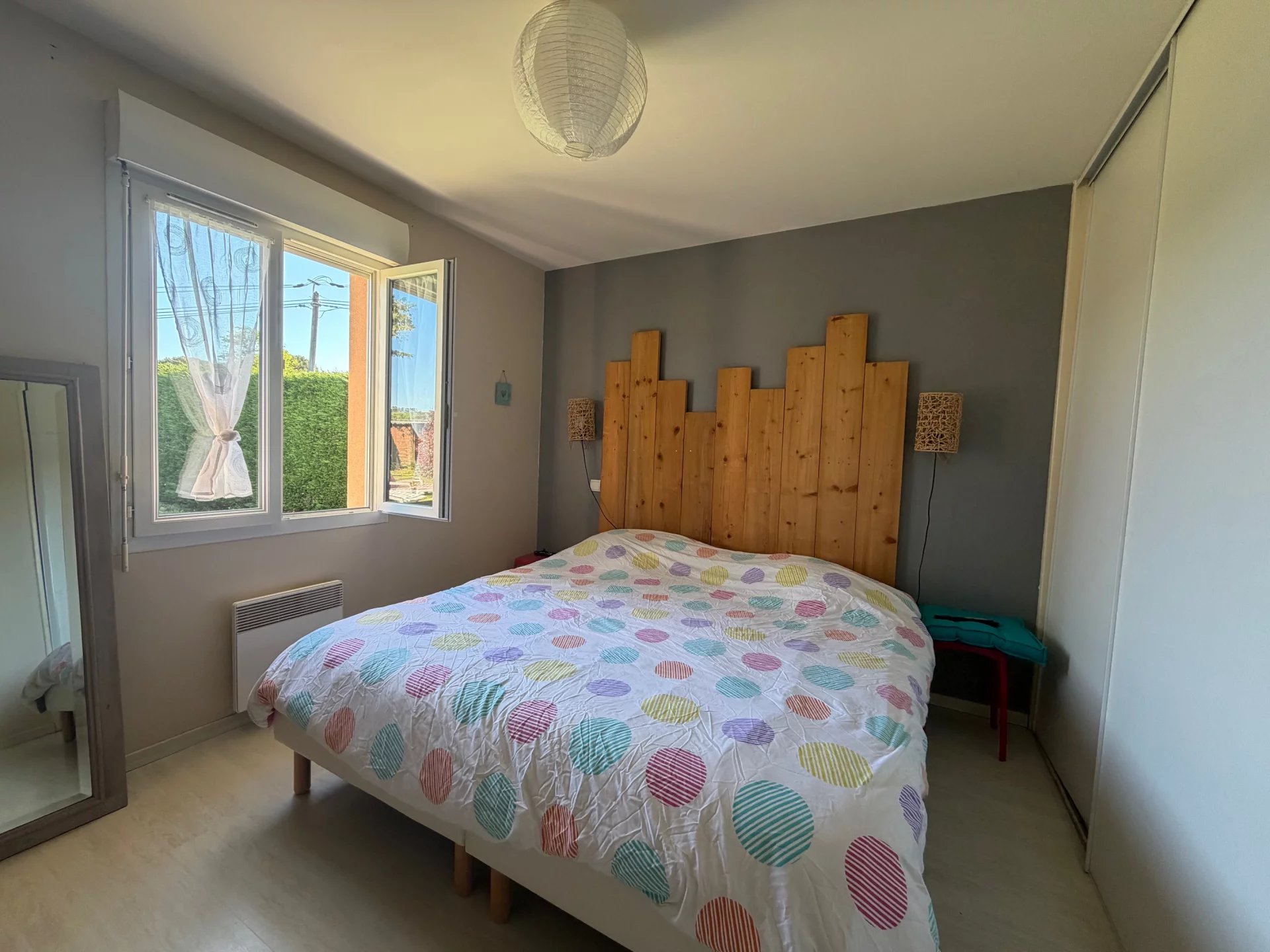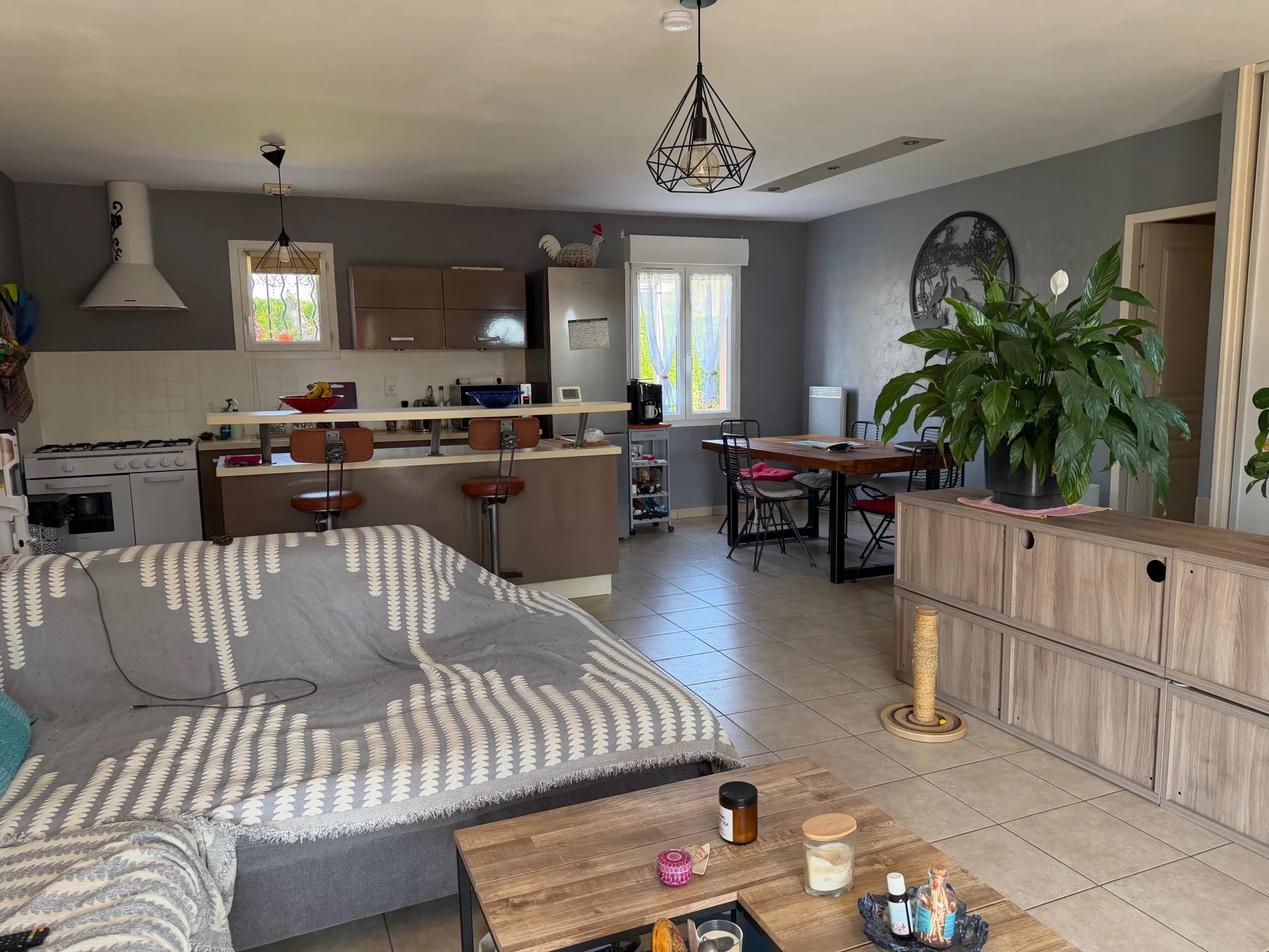 Située à deux pas de l'autoroute A10, maison de plain-pied offrant un espace de vie avec cuisine équipée, 3 chambres, une salle de bains, un w-c séparé, une buanderie. Un garage attenant, le tout sur un jardin clos et arboré d'environ 700m².