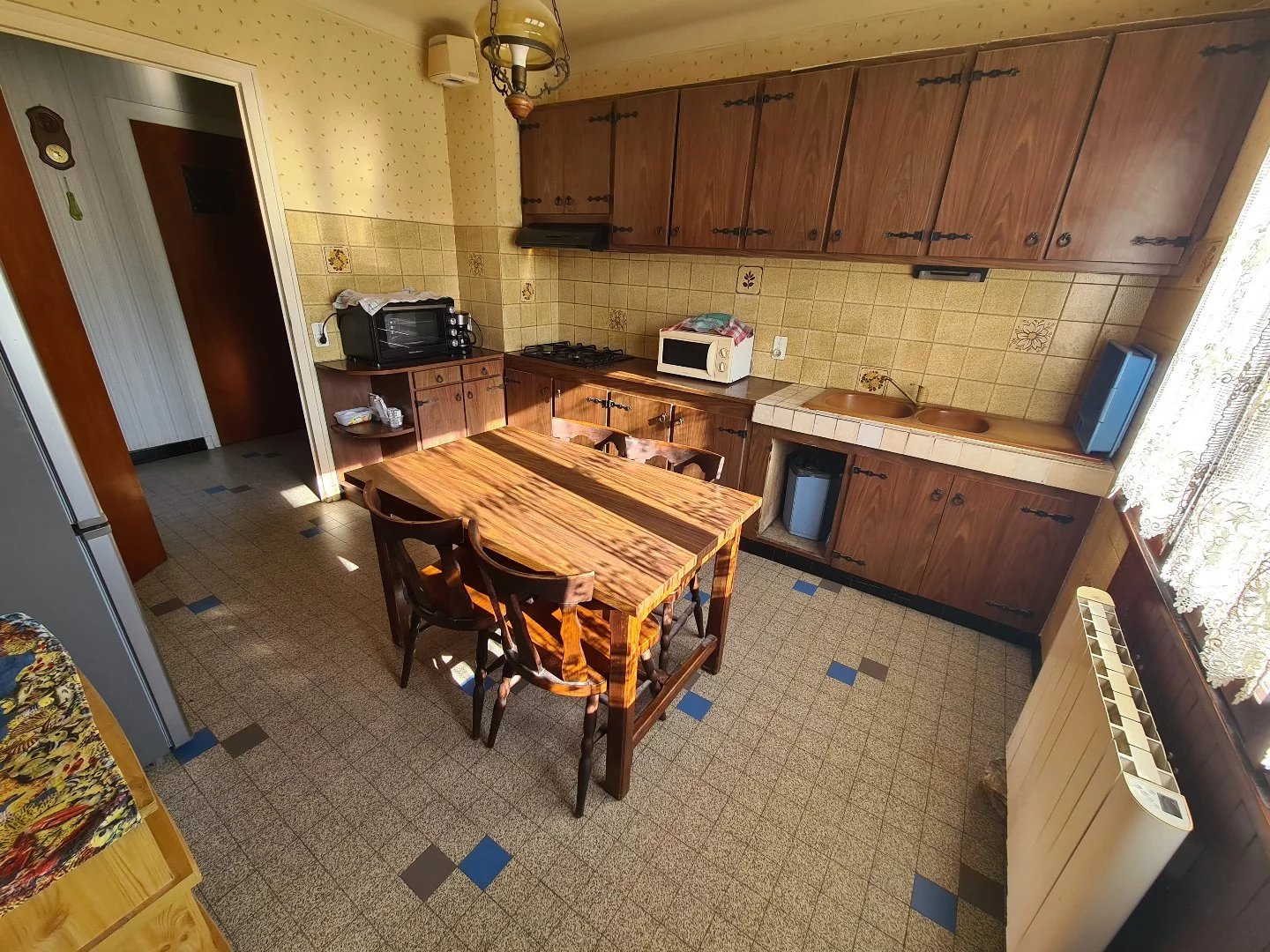 Maison des années 1970 à rénover e,tièrement sur un terrain de 1771 m² plat. Elle comprend au sous-sol : un garage, une buanderie, une cave, une pièce. Au rez-de-chaussée surélevé : une cuisine, une salle à manger/salon, une terrasse, deux chambres, une salle de bain, un wc. Au premier étage : deux chambres, un débarras et un galetas. Possibilité de construire une autre maison sur le terrain.