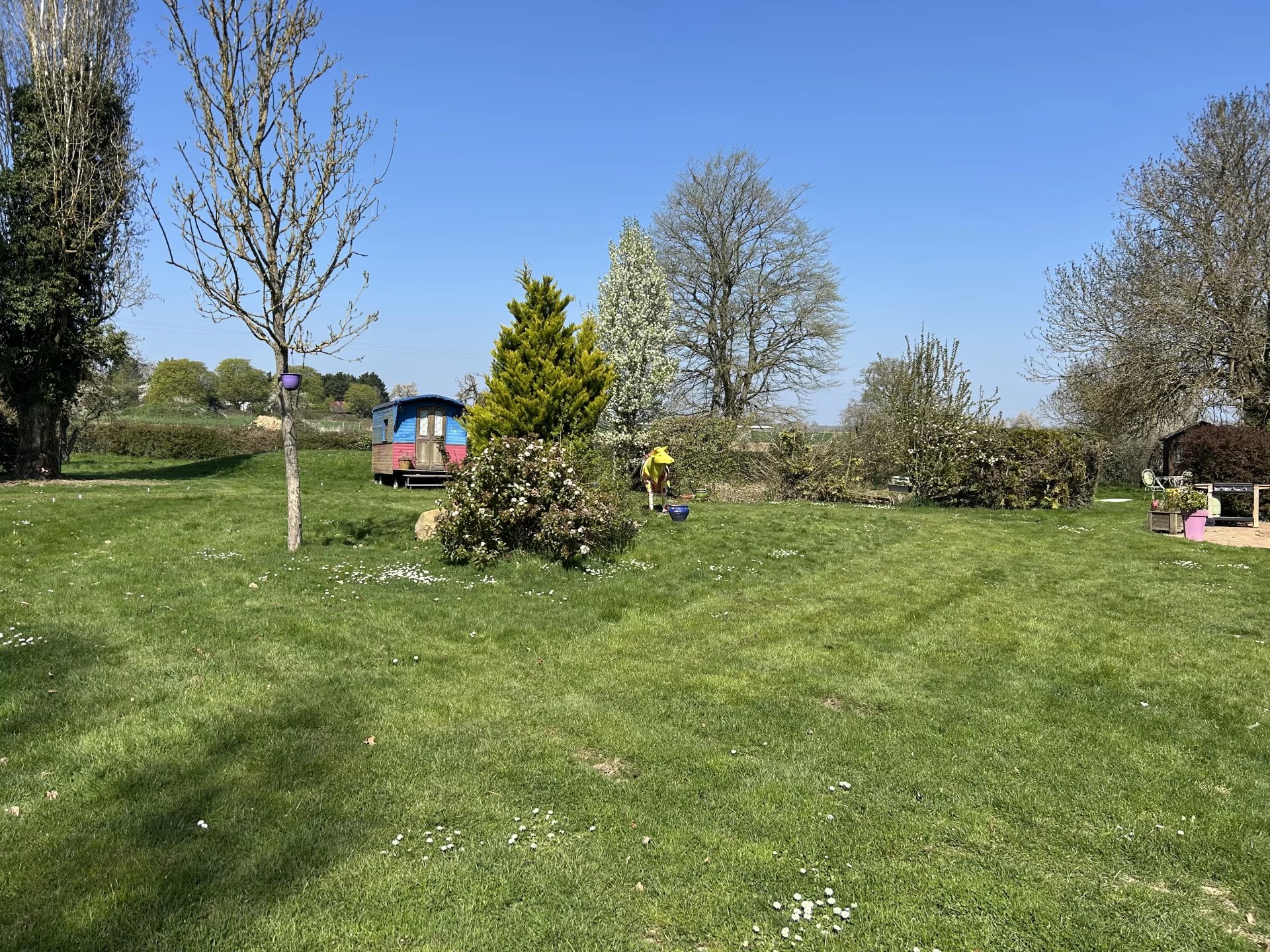Cette maison lumineuse dispose d'un parc arboré de 2385 m² avec une dépendance aménagée en gîte ou maison d'amis de 50 m² avec une cuisine, un salon-salle à manger avec une cheminée, une chambre et une salle d'eau avec wc. Un garage et une mare. Proche de toutes les commodités.