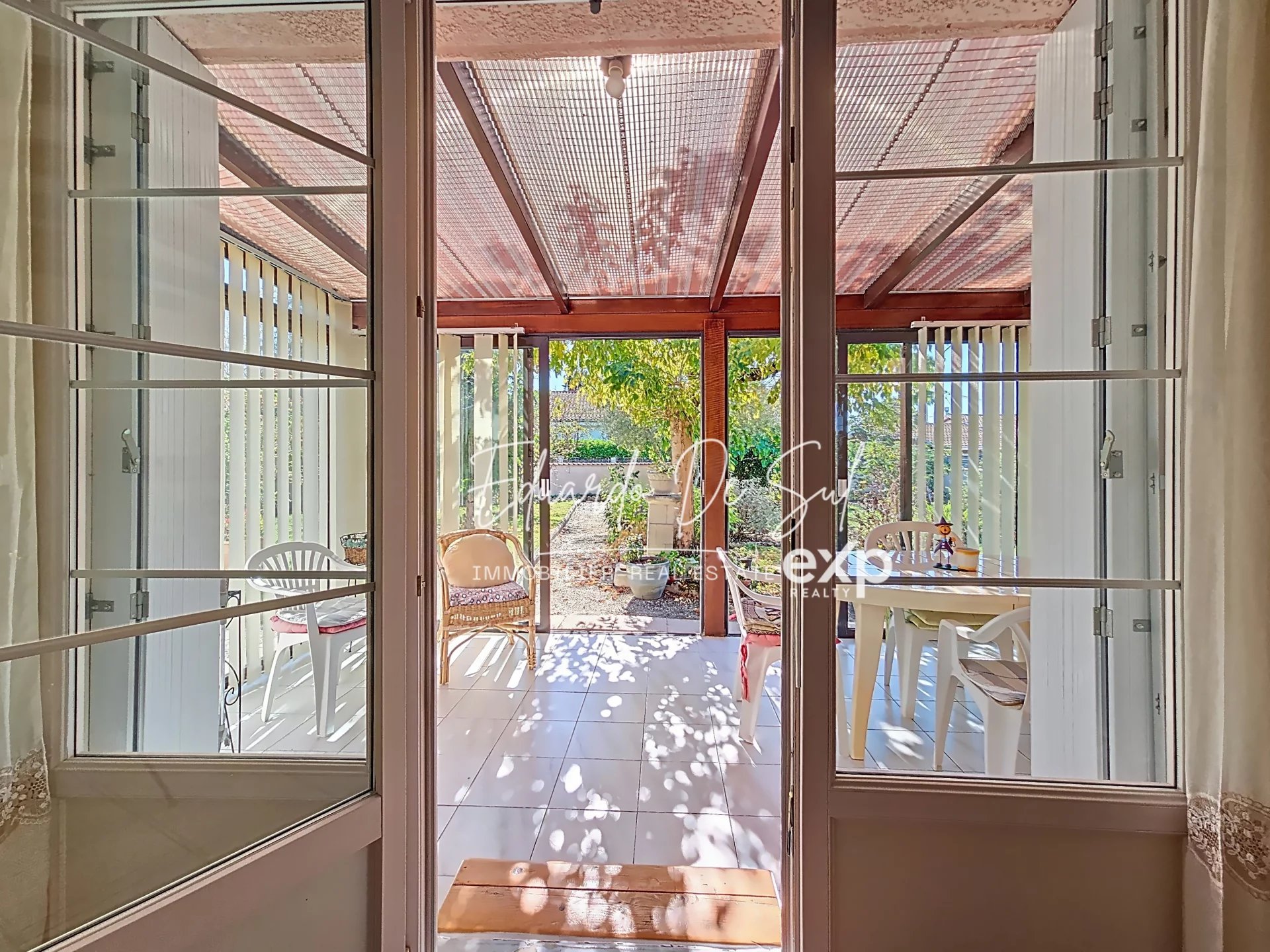 Édifiée sur un terrain arboré et entièrement clos de 800 m², elle se compose d’une entrée avec rangements, d’une cuisine indépendante, d’un séjour traversant avec cheminée ouvrant sur une véranda lumineuse, de 2 chambres, d’une salle d’eau et un WC séparé.