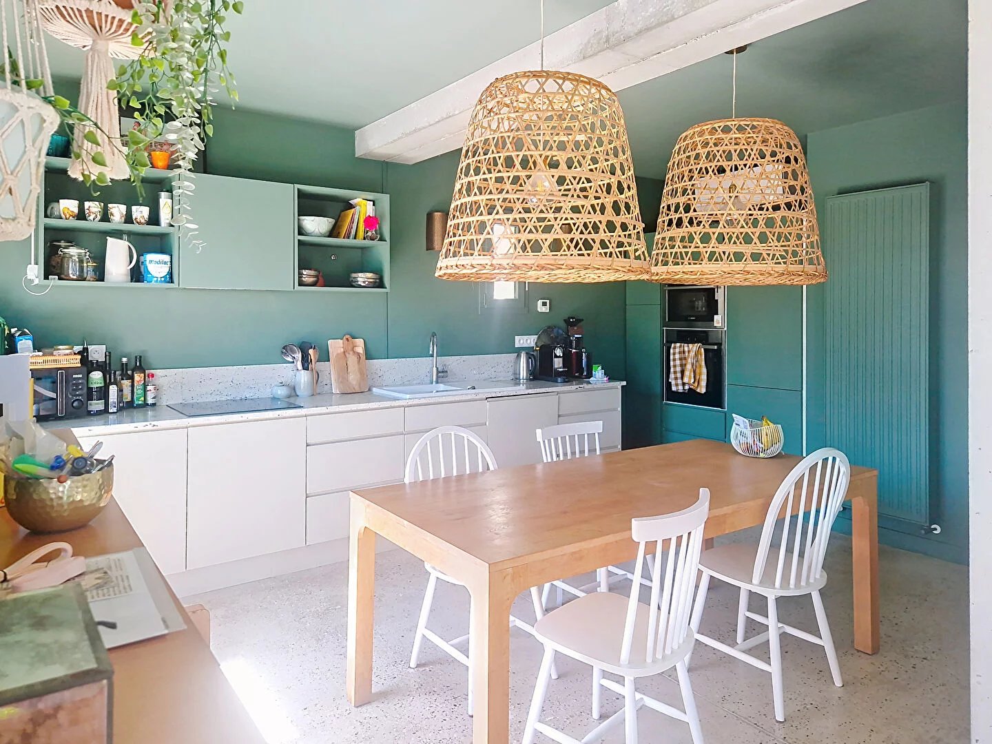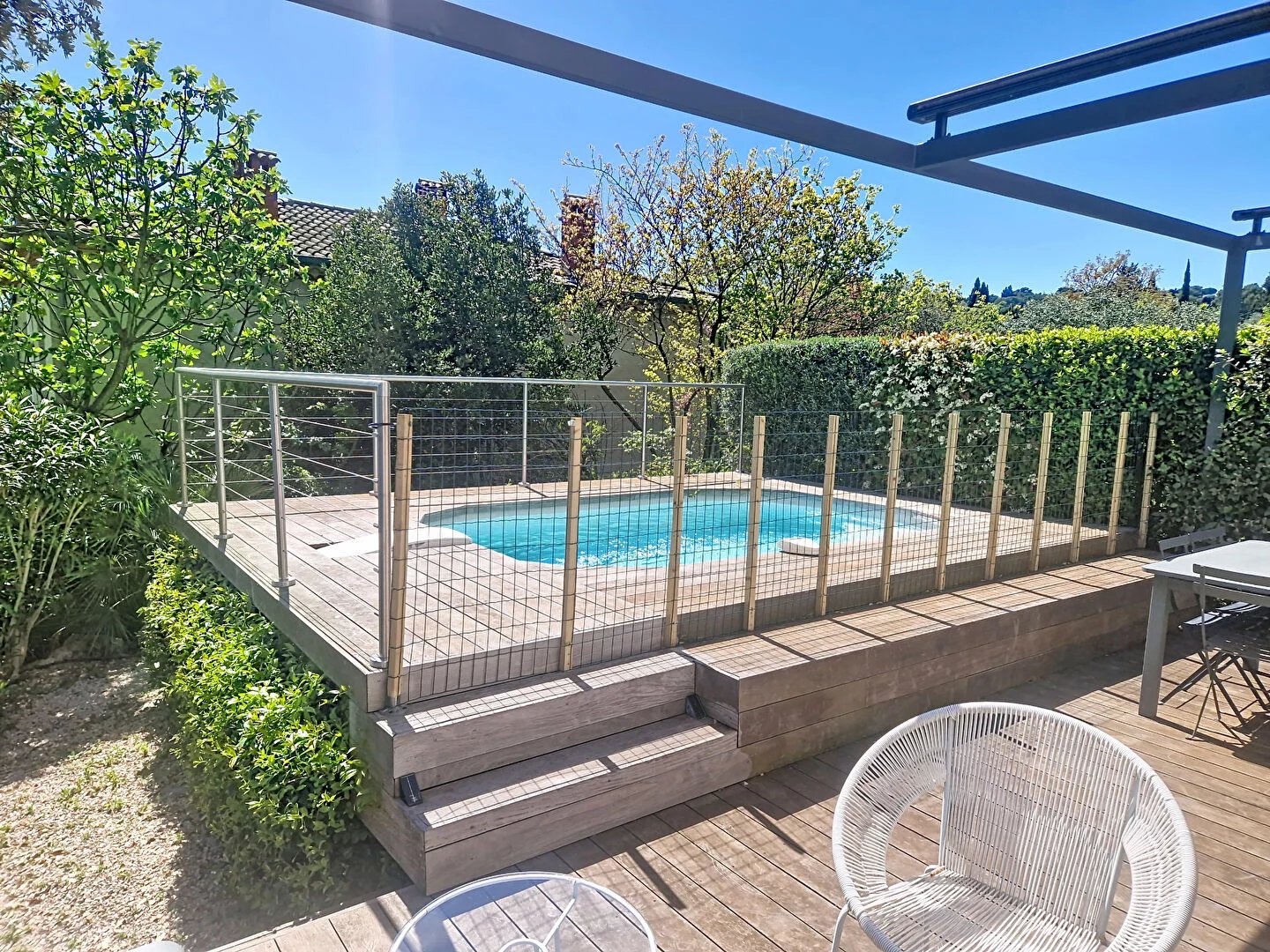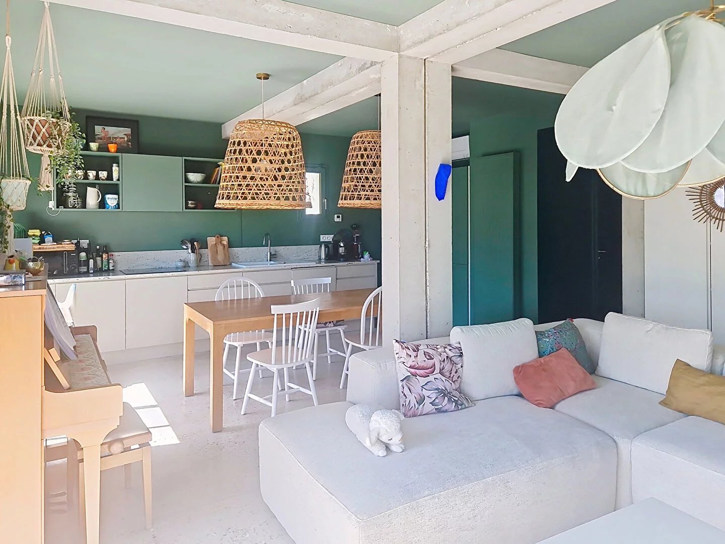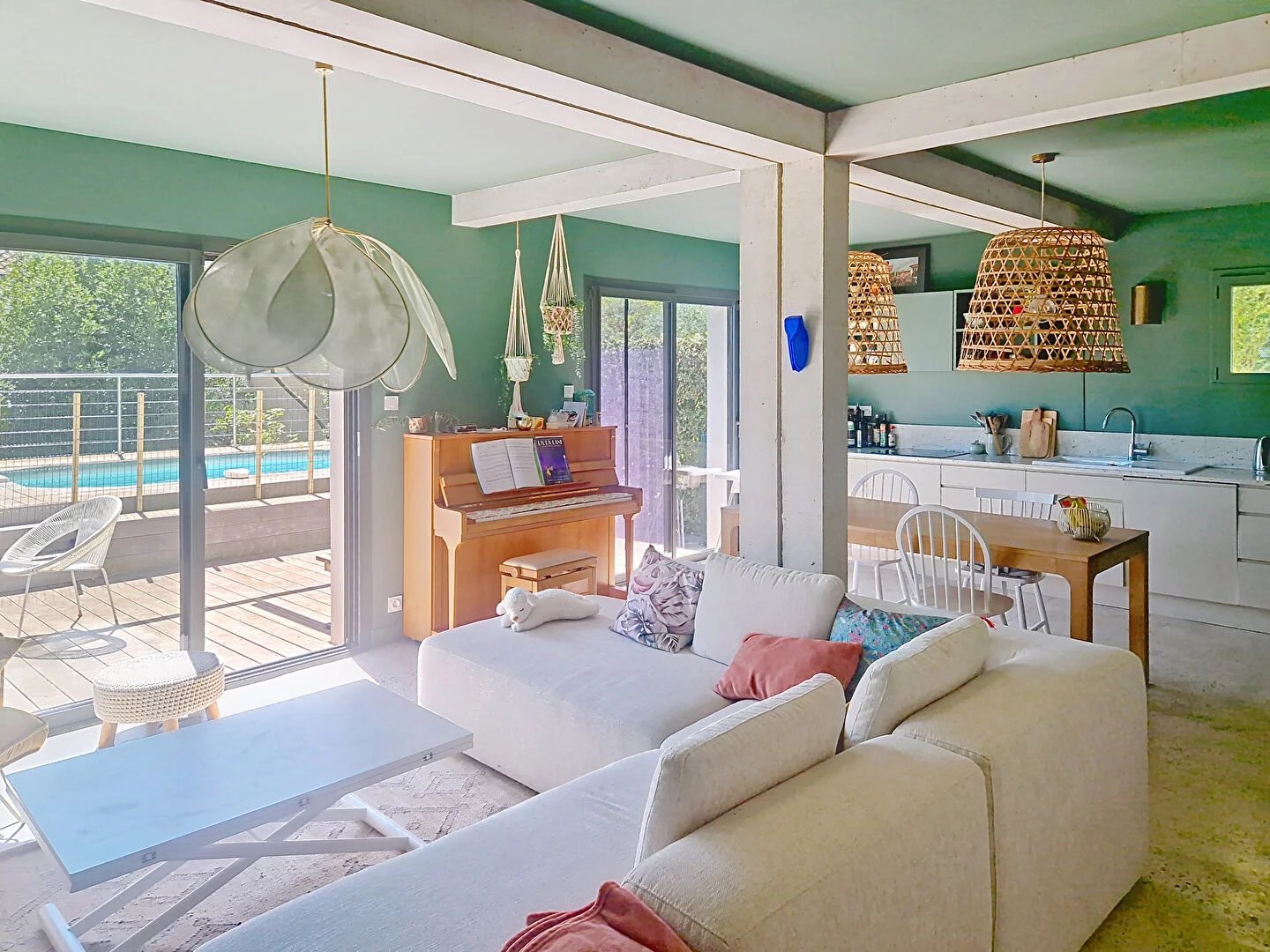 Climatisation, menuiserie alu double vitrage avec volets roulant électrique, alarme, vide sanitaire. Possibilité de stationnement dans le jardin.