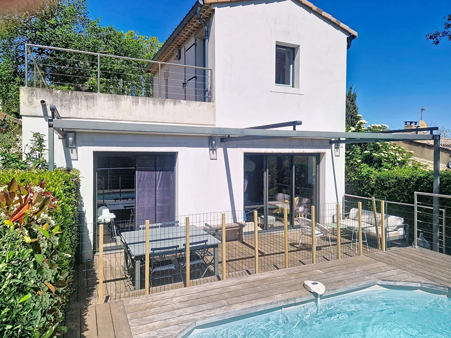 A 5 minutes à pied du centre historique de Villeneuve les Avignon, maison d'environ 91 m² habitables entièrement restaurée avec goût sur une parcelle de 305 m², au rez de chaussée une très belle pièce à vivre de 36 m² lumineuse et sans vis à vis donnant sur une terrasse de 31 m² avec bassin, 2 chambres, buanderie, toilettes, dégagement.