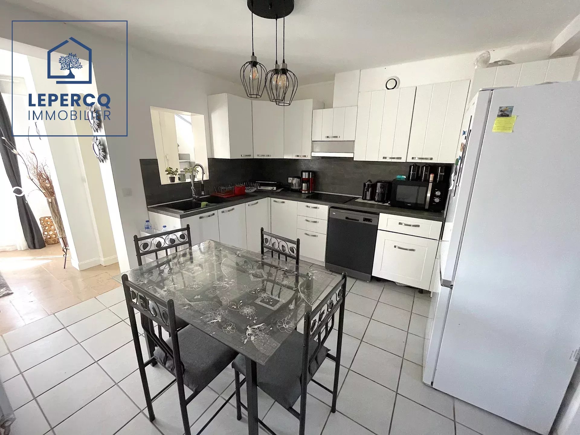 Proche du centre-ville et de la gare, maison 5 pièces élevée sur sous-sol total comprenant au rez-de-chaussée : entrée, séjour, salle à manger, cuisine et salle d'eau avec wc.