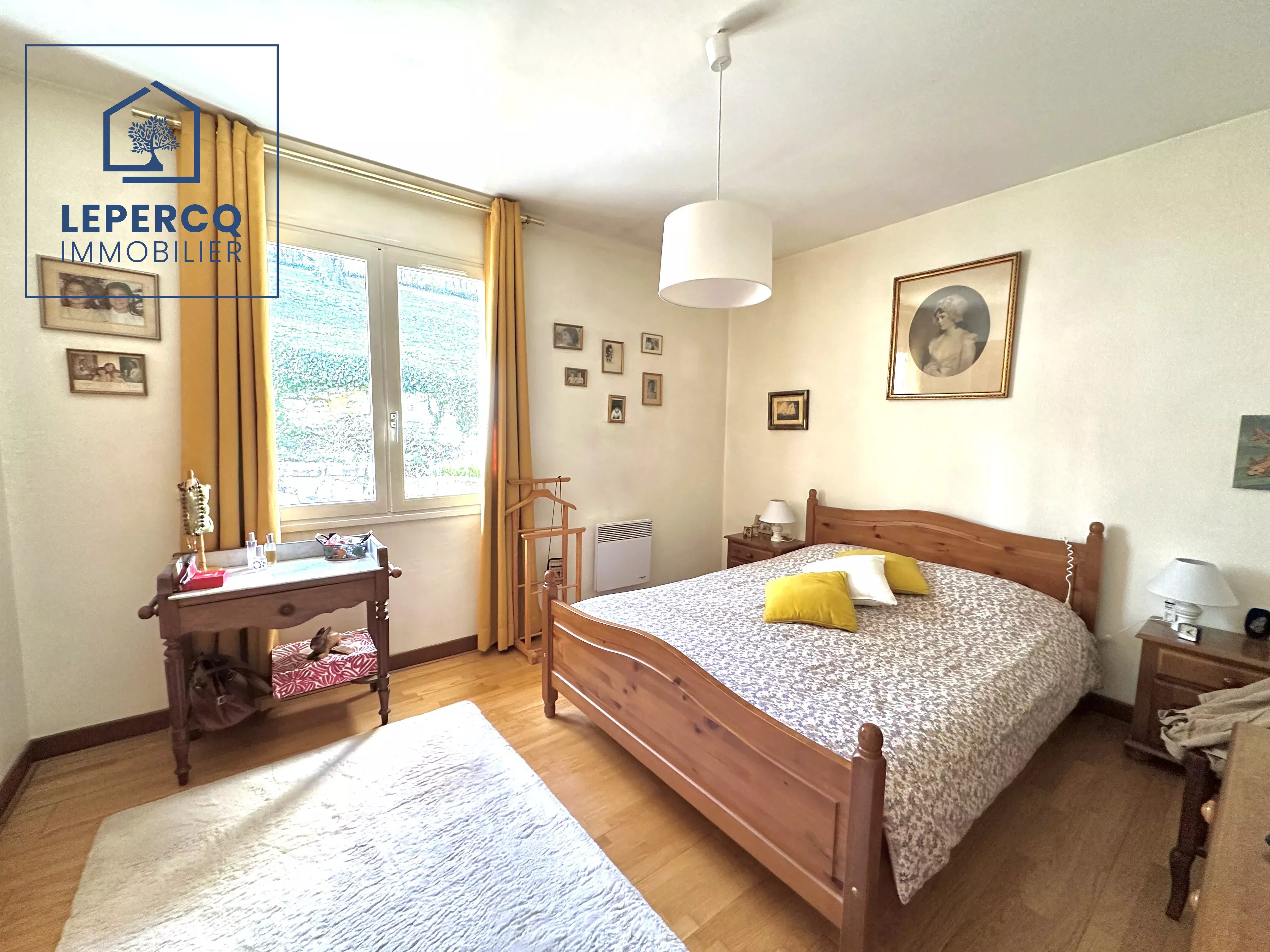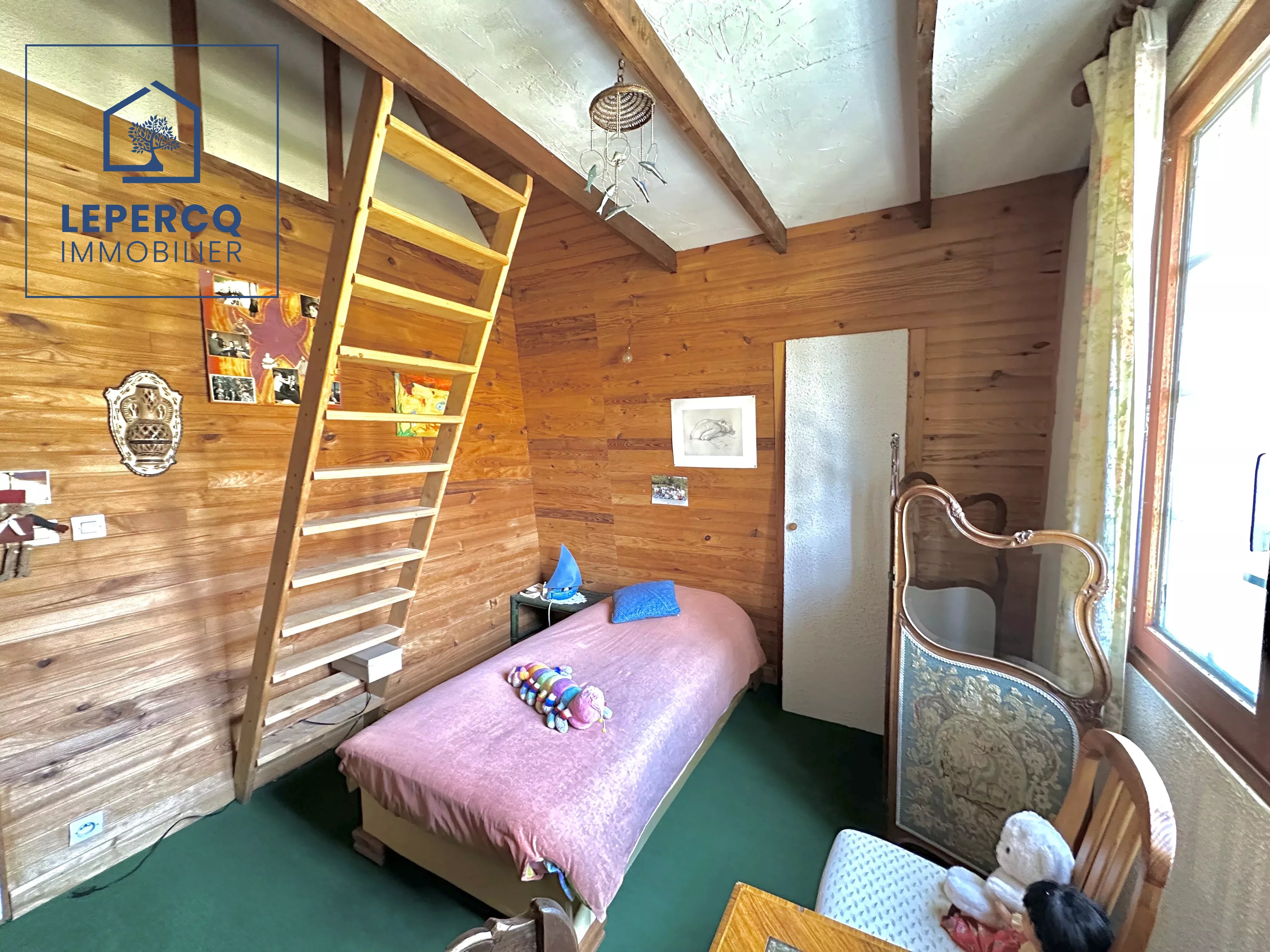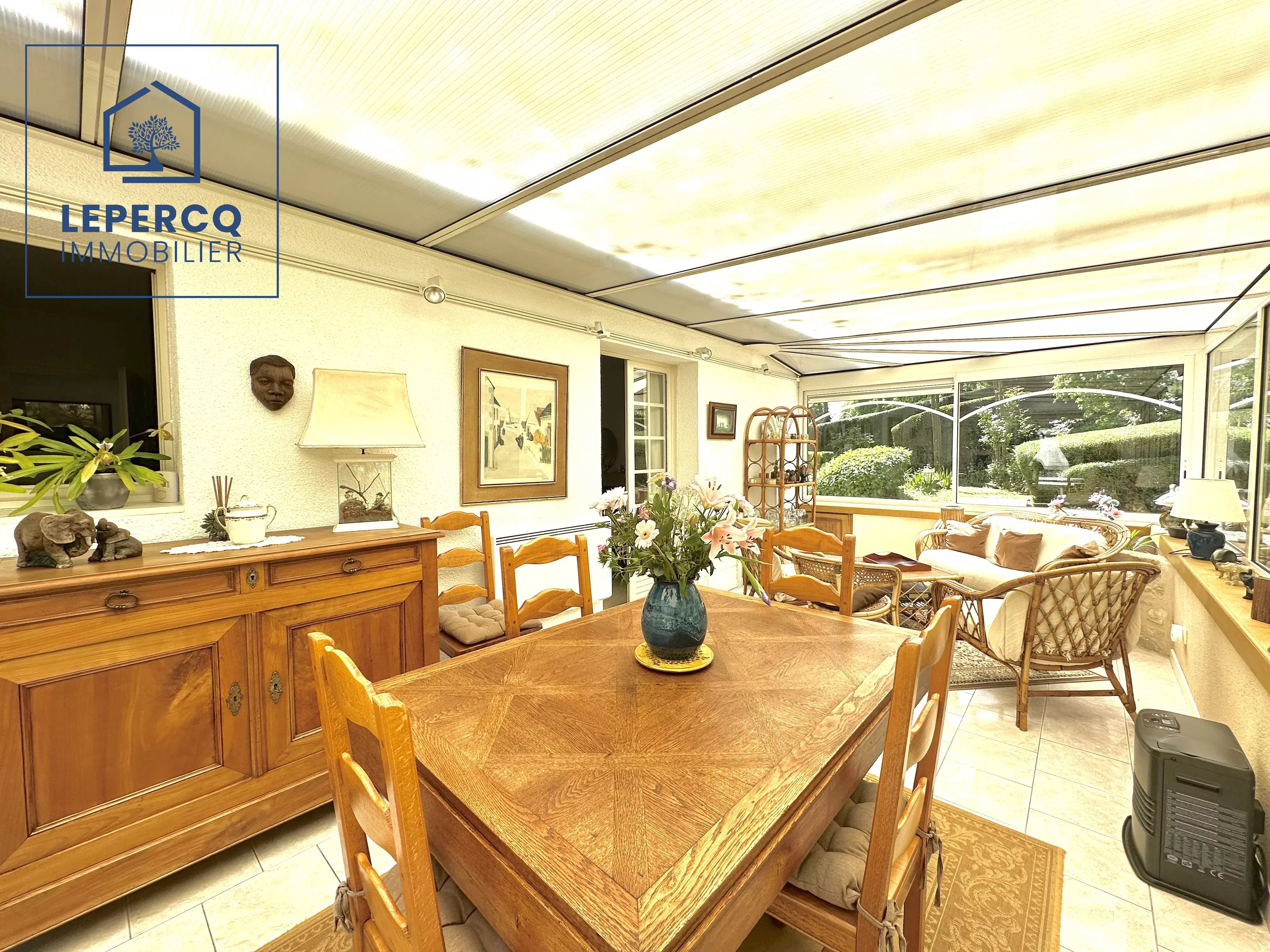 - Au rez-de-chaussée : une entrée, un séjour double avec cheminée, une grande véranda, une cuisine, deux chambres, une salle de bains et un wc.