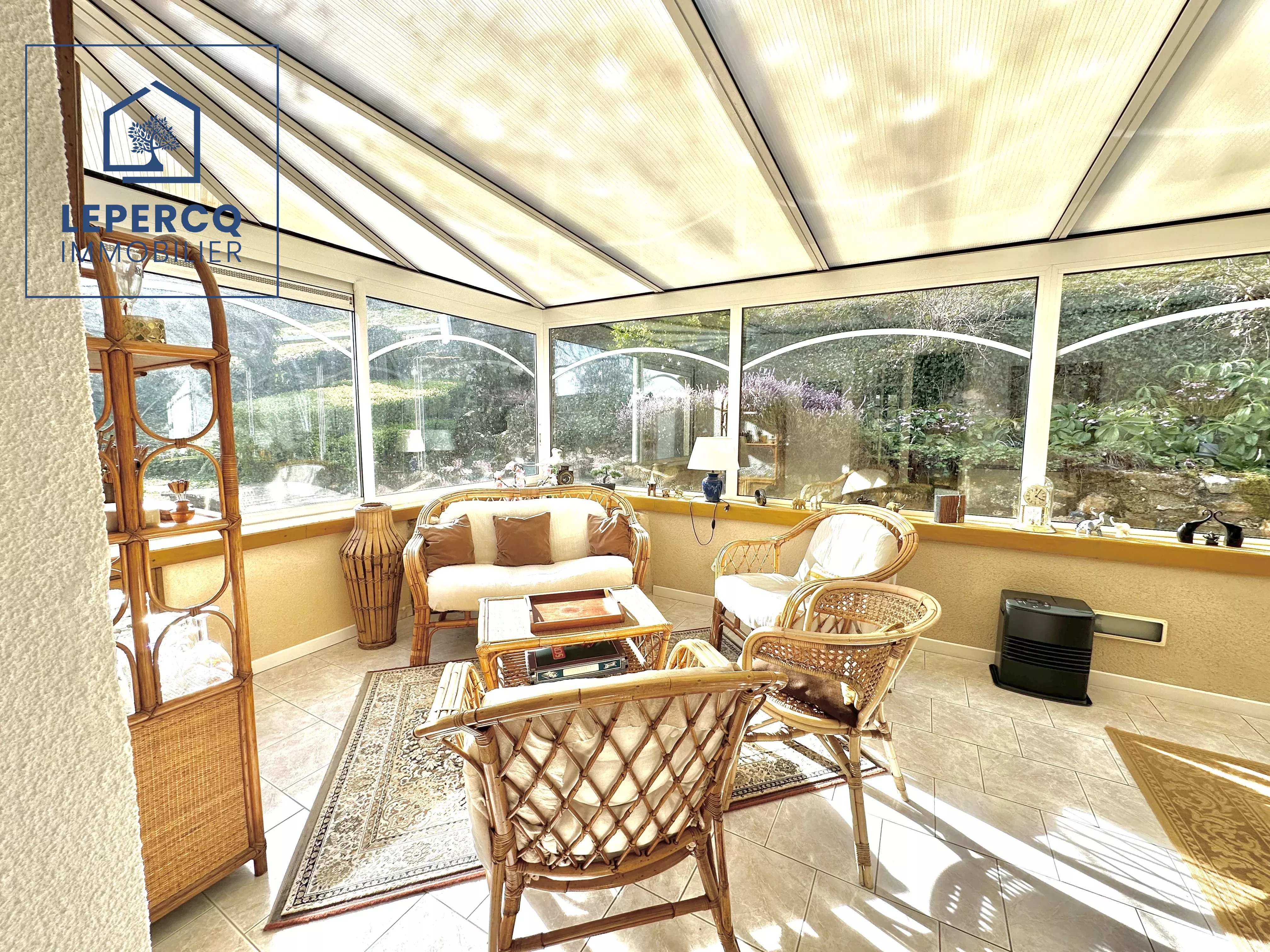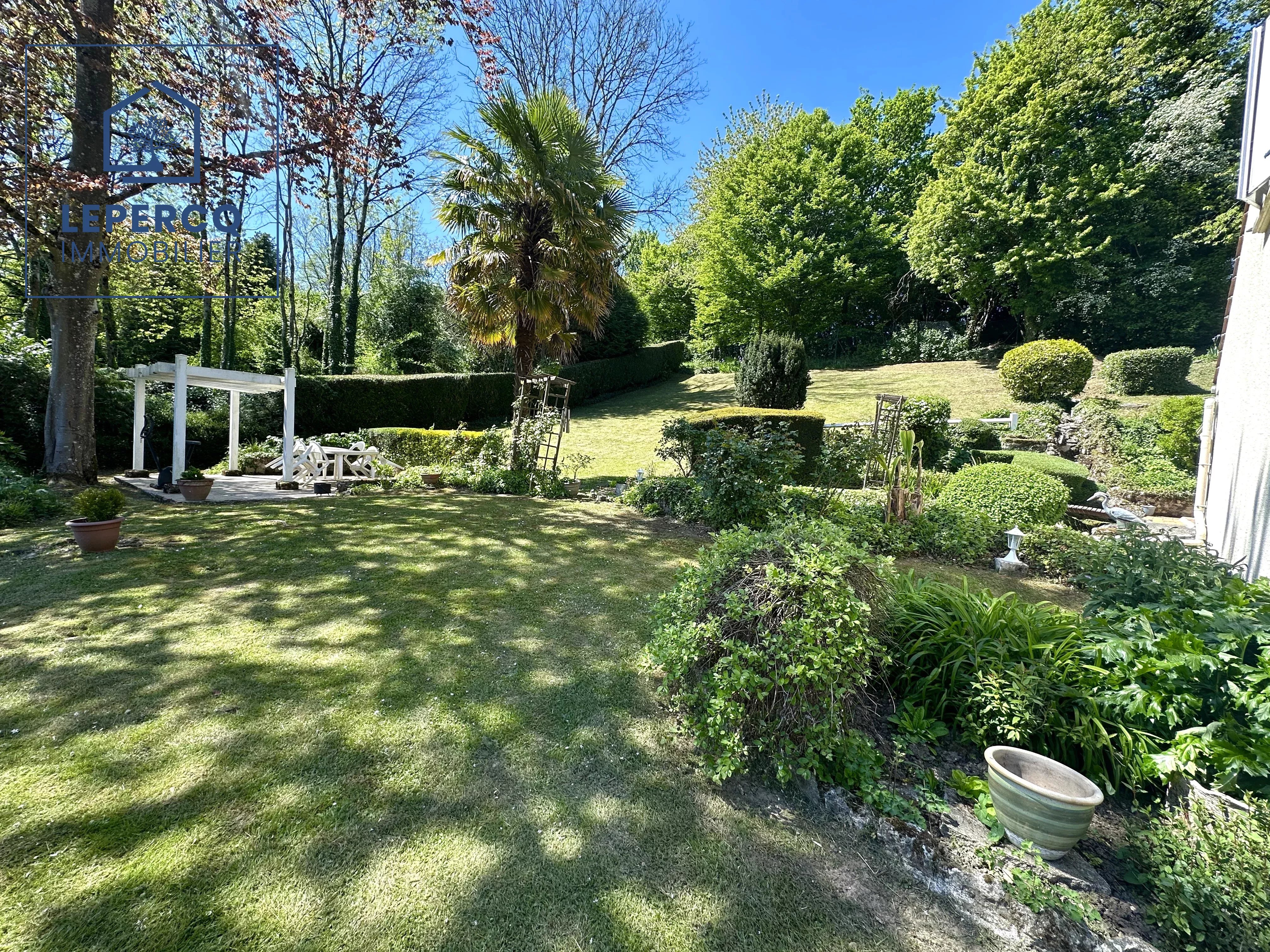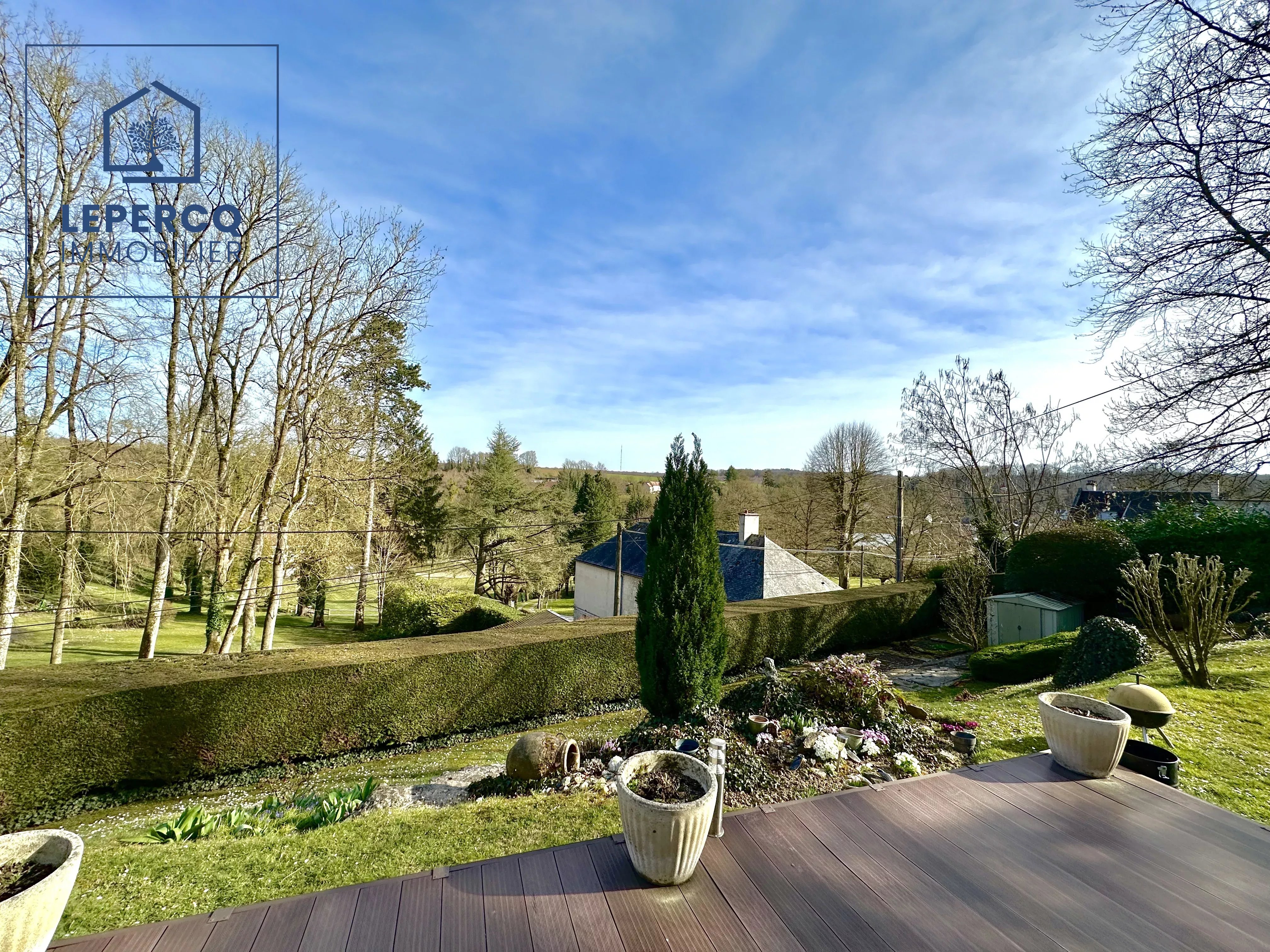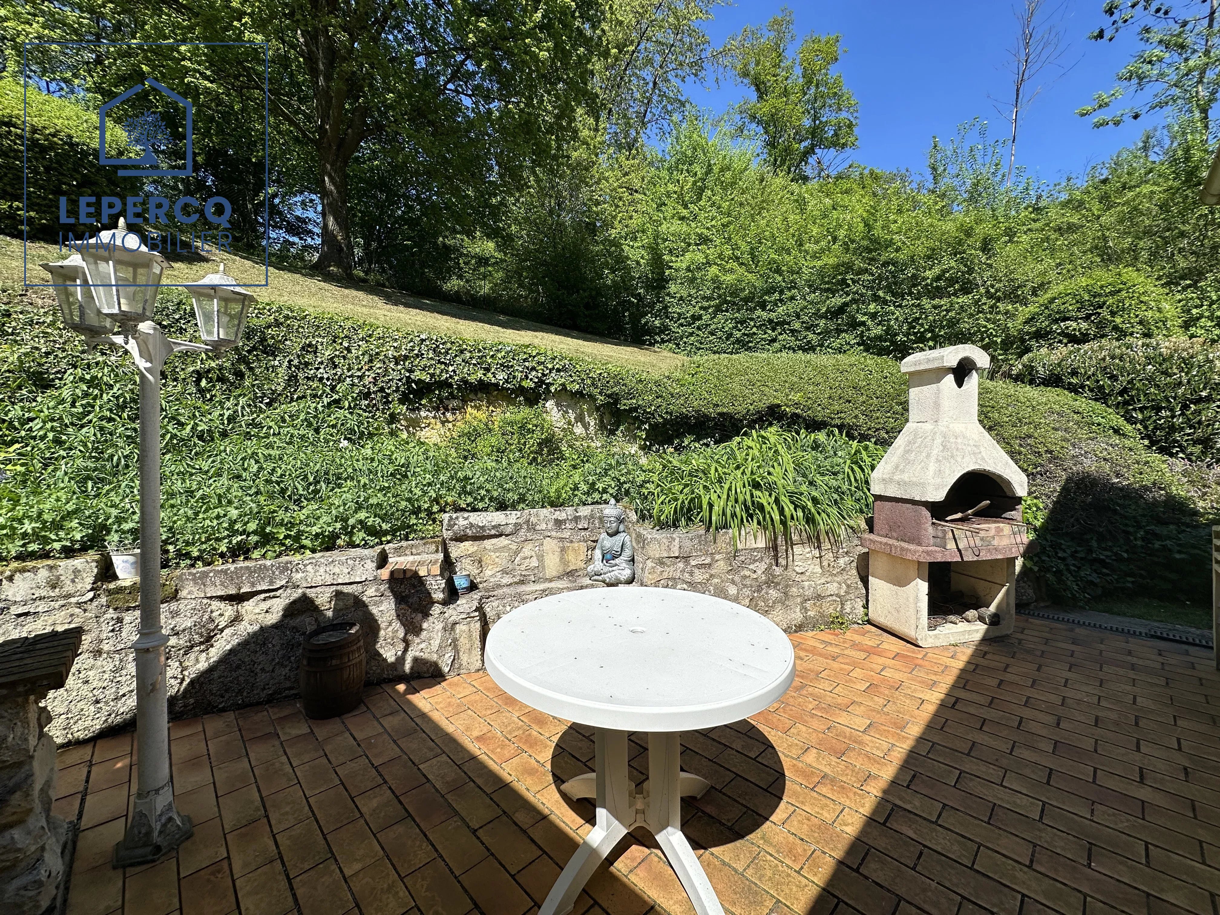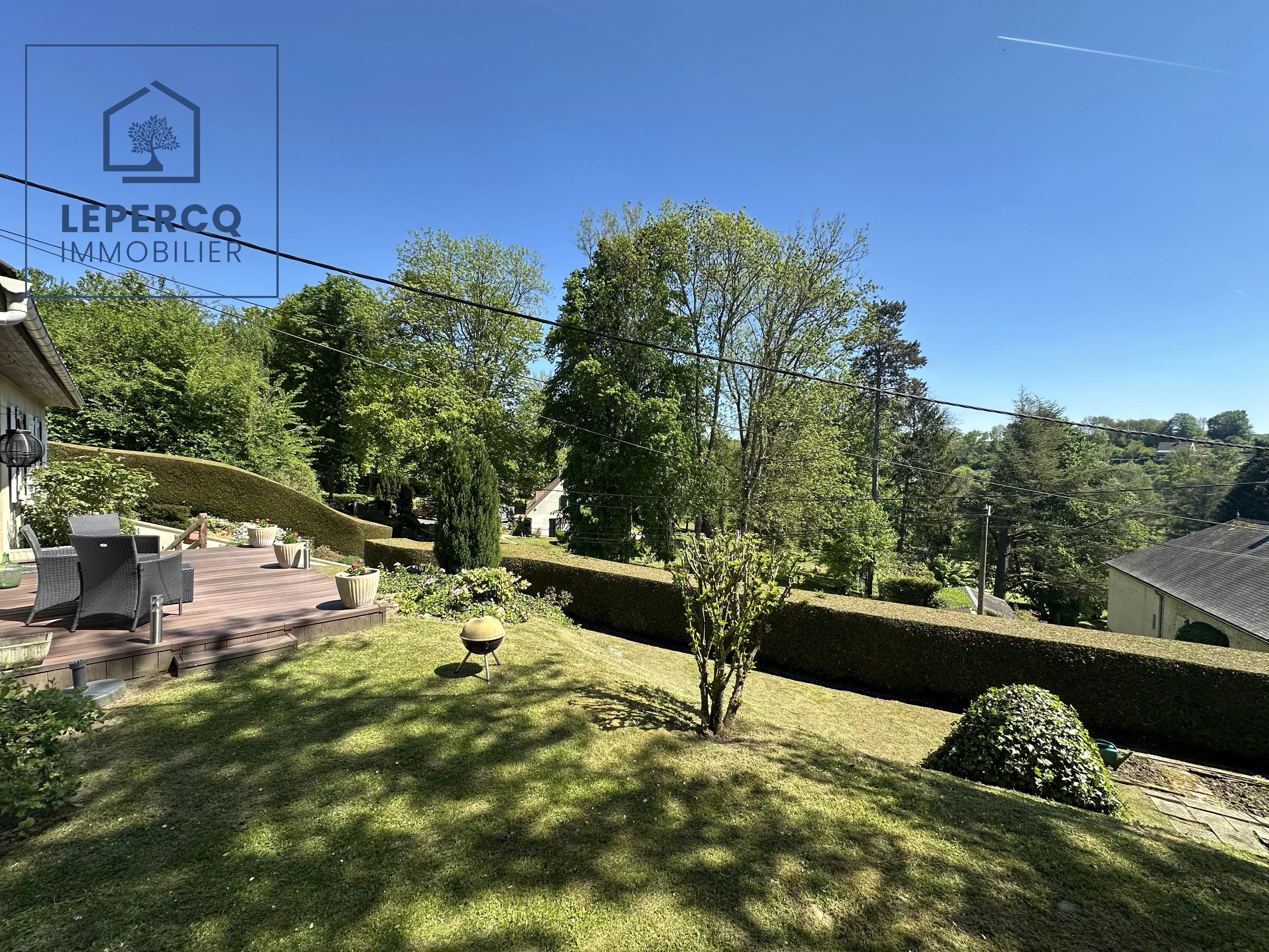 Vous serez charmé par ce beau jardin de 1500m² et sa terrasse avec une vue dégagée sur la forêt.