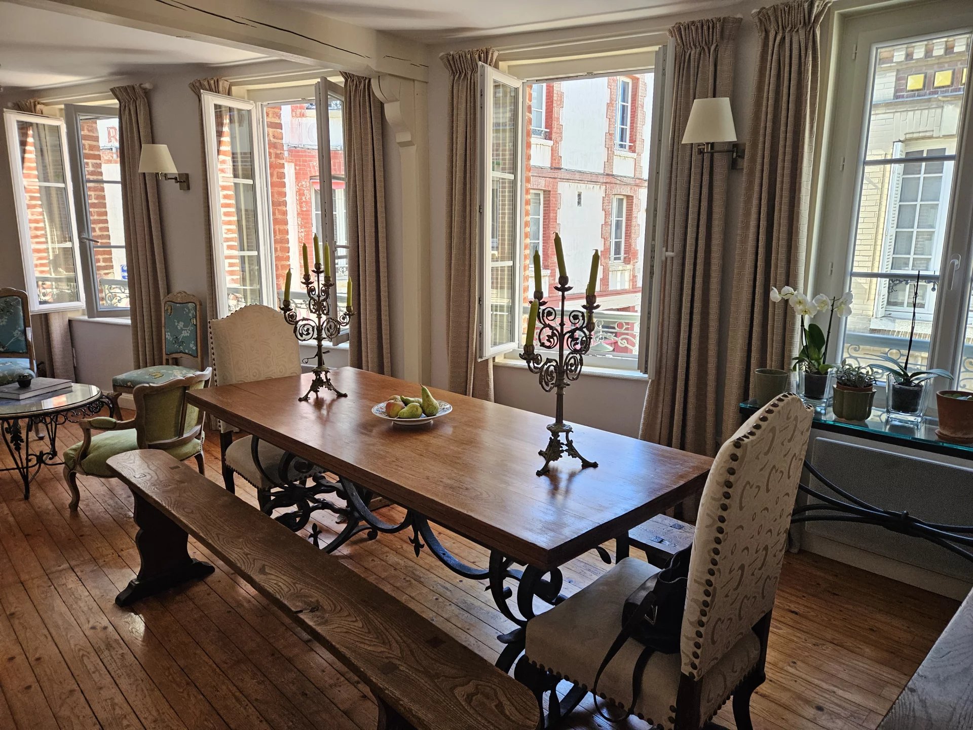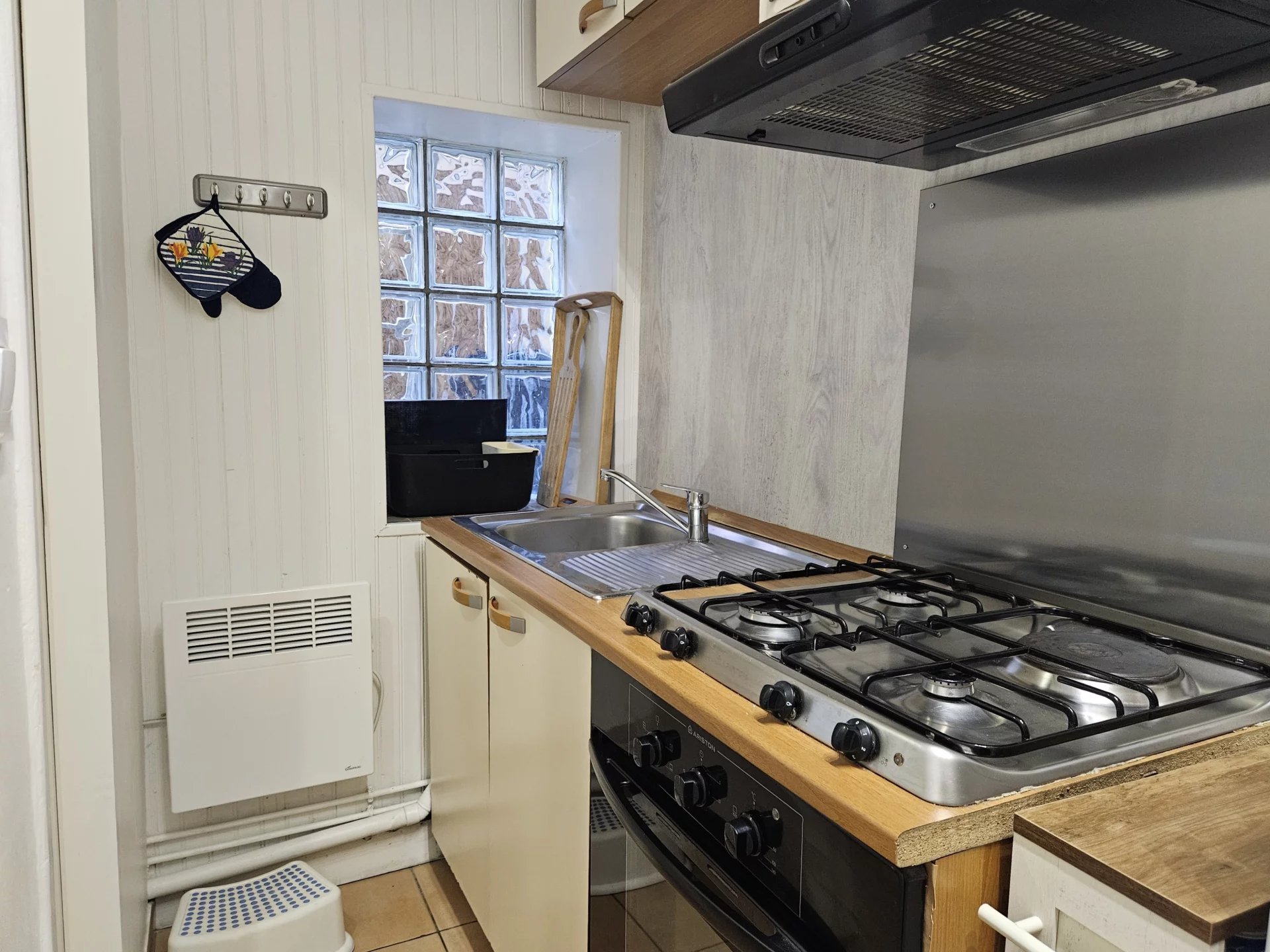 450 000 €Villerville, centre-bourg historique, accès direct à moins de 100 m de la plage et au pied des commerces, maison de caractère avec studio indépendant. Belle vue sur la mer et sur l'emblématique Cabaret Normand de l'ensemble de la propriété. Ensemble immobilier de 99 m² comprenant une maison principale (env. 76 m²) et un studio indépendant (env. 22 m²) pouvant accueillir un hébergement touristique. La maison se compose d’une belle pièce de vie avec cheminée en pierre et brique, une cuisine aménagée et équipée, deux chambres (actuellement en enfilade mais facilement séparables) et une salle de bains avec wc. Le studio indépendant dispose d’une pièce de vie avec cuisine, salle d’eau et wc. Le bien offre 3 espaces de couchage et une possibilité de vie de plain-pied grâce au studio. Très bon état général. Toiture en bon état avec réfections partielles récentes. Chauffage électrique + par la cheminée. Double vitrage (PVC et bois selon les parties). Assainissement collectif. Bien de caractère avec éléments anciens conservés, façade authentique typique du village, charme préservé. Emplacement recherché, au calme et en plein cœur de Villerville.