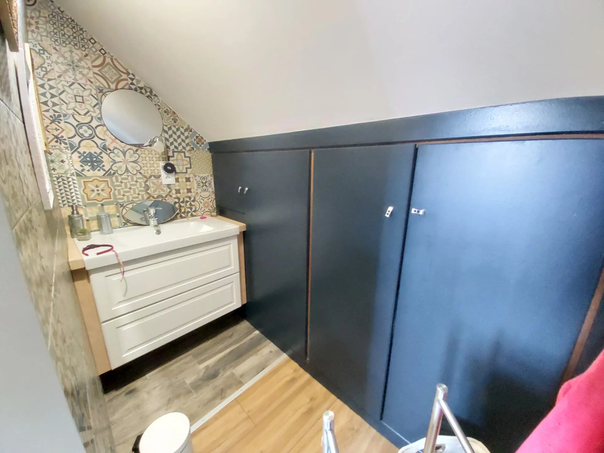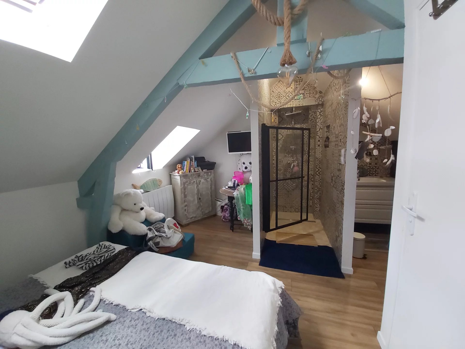299 000 €Dans centre-bourg historique de Villerville, maison de pêcheur en excellent état, deux chambres à usage de suites parentales, sur trois niveaux et distribuée comme suit: salon avec cuisine ouverte aménagée/équipée, buanderie/arrière-cuisine et wc au rez-de-chaussée. Palier desservant une chambre avec salle de douche, wc et penderie privatifs au 1er étage. Une chambre avec salle de douche, wc et penderie privatifs au 2ème étage. Electricité et ballon électrique connectés, double vitrage PVC, prestations de qualité. Plage et commerces à pied à moins de 200 mètres, environnement central et privilégié.