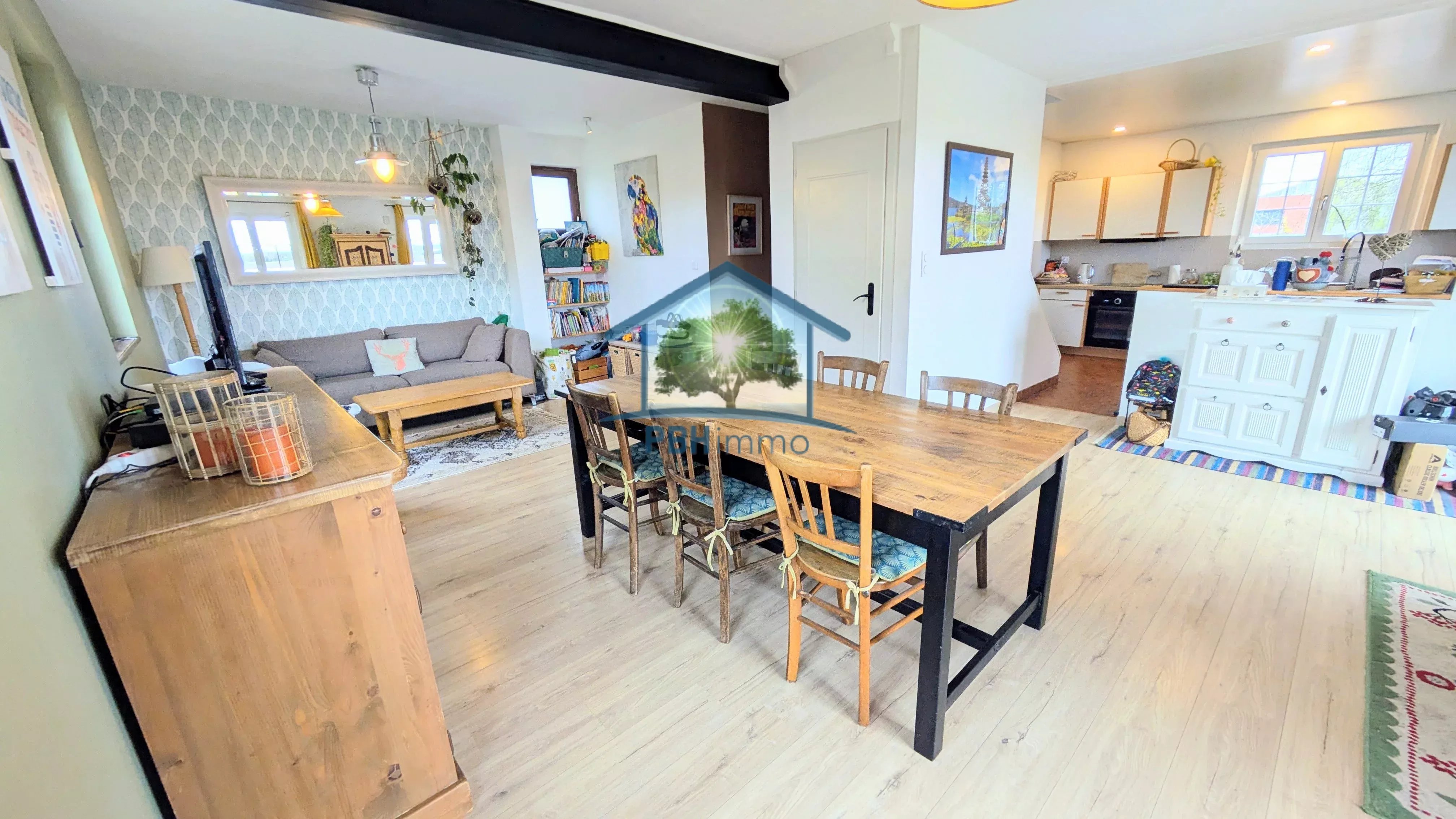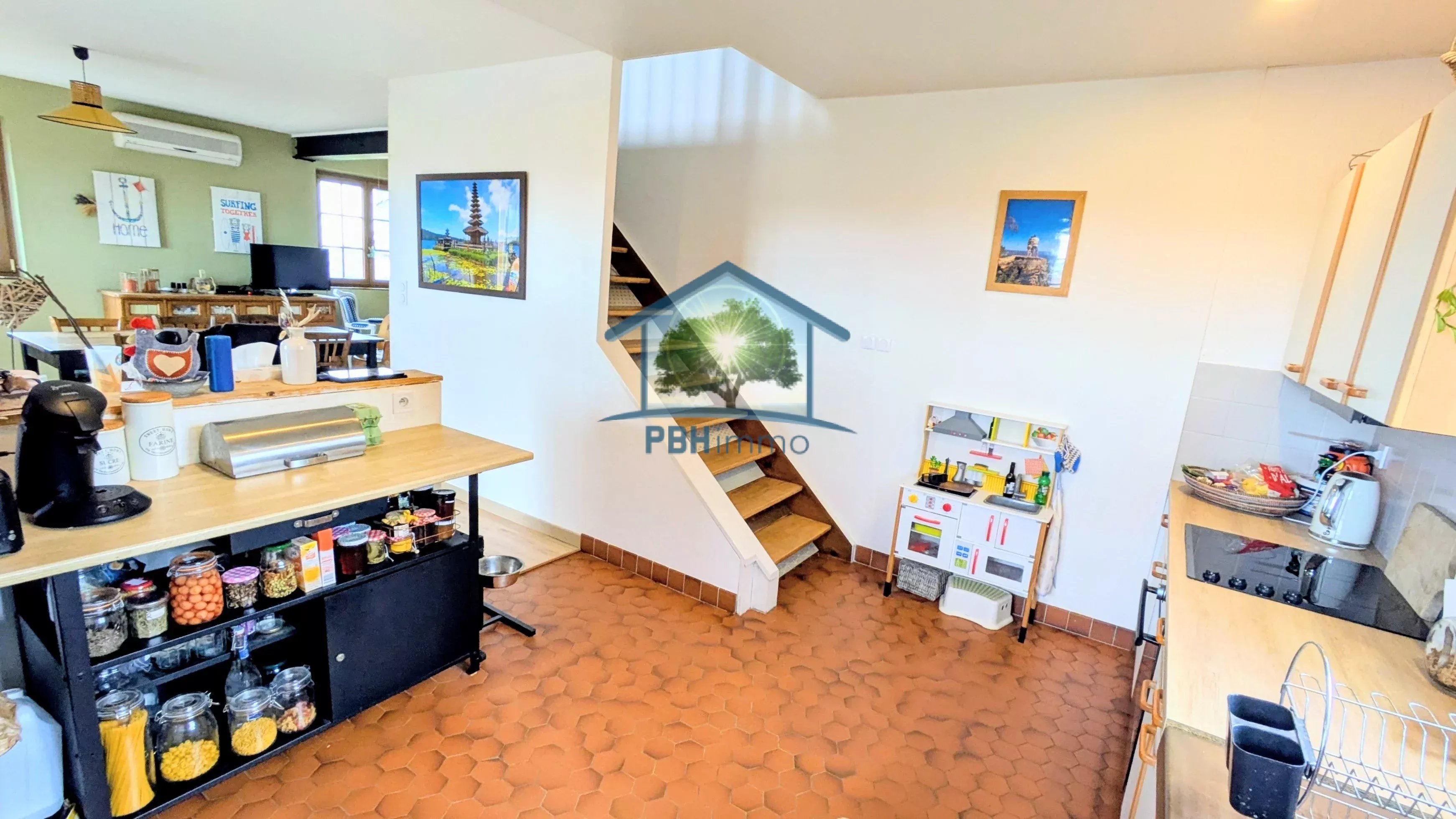 Le REZ-DE-CHAUSSEE de la maison est composée de vaste séjour ouvert sur la cuisine (42m²), une salle de bain avec WC ainsi qu'une chambre à coucher avec placards de rangement intégrés.