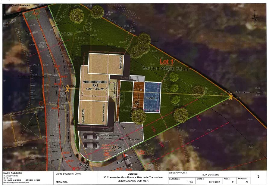 Dans un écrin de verdure, au calme et en position dominante, beau terrain de 765 m² viabilisés en légère pente avec 204 m² de surface de plancher constructibles avec vue mer.