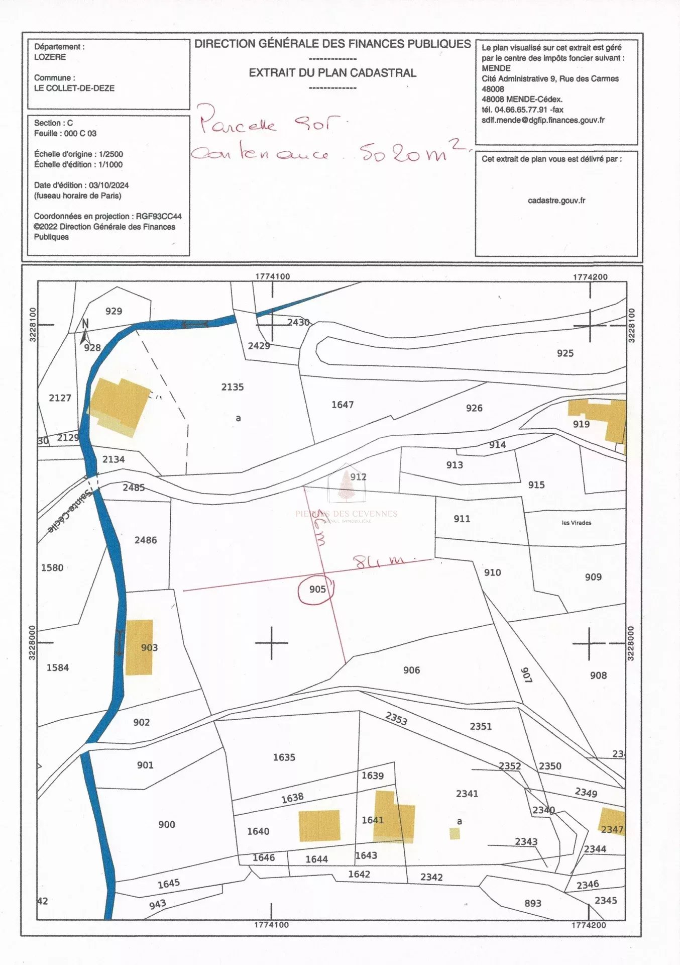Terrain de 5020 m² constructible composé d’une partie plate pour une construction et de restanques boisés avec de beaux murs en pierre. Exposition plein sud en position dominante non loin du centre du collet de deze