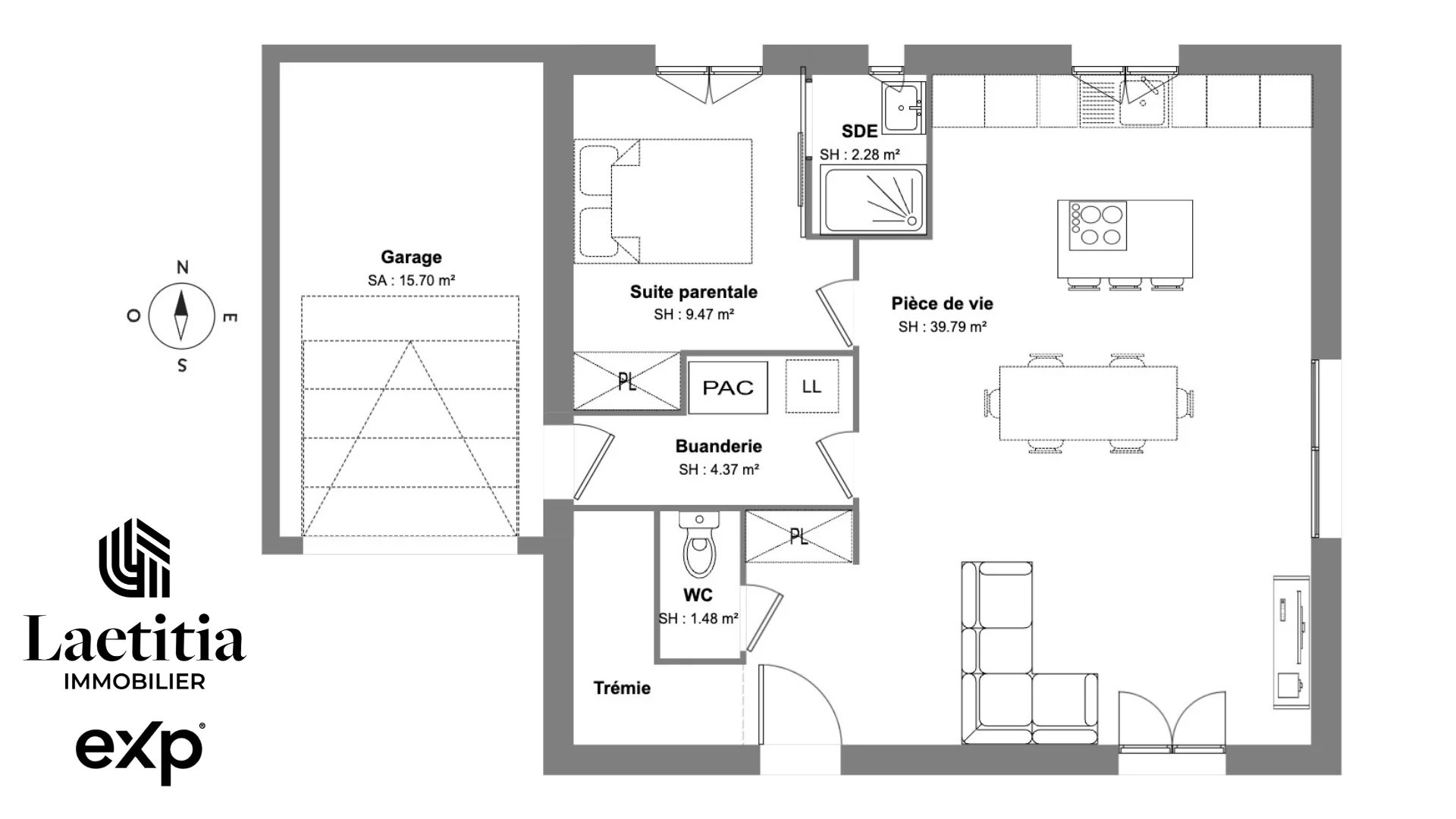 Maison R+1 adaptée à ce terrain, 115m2 + garage