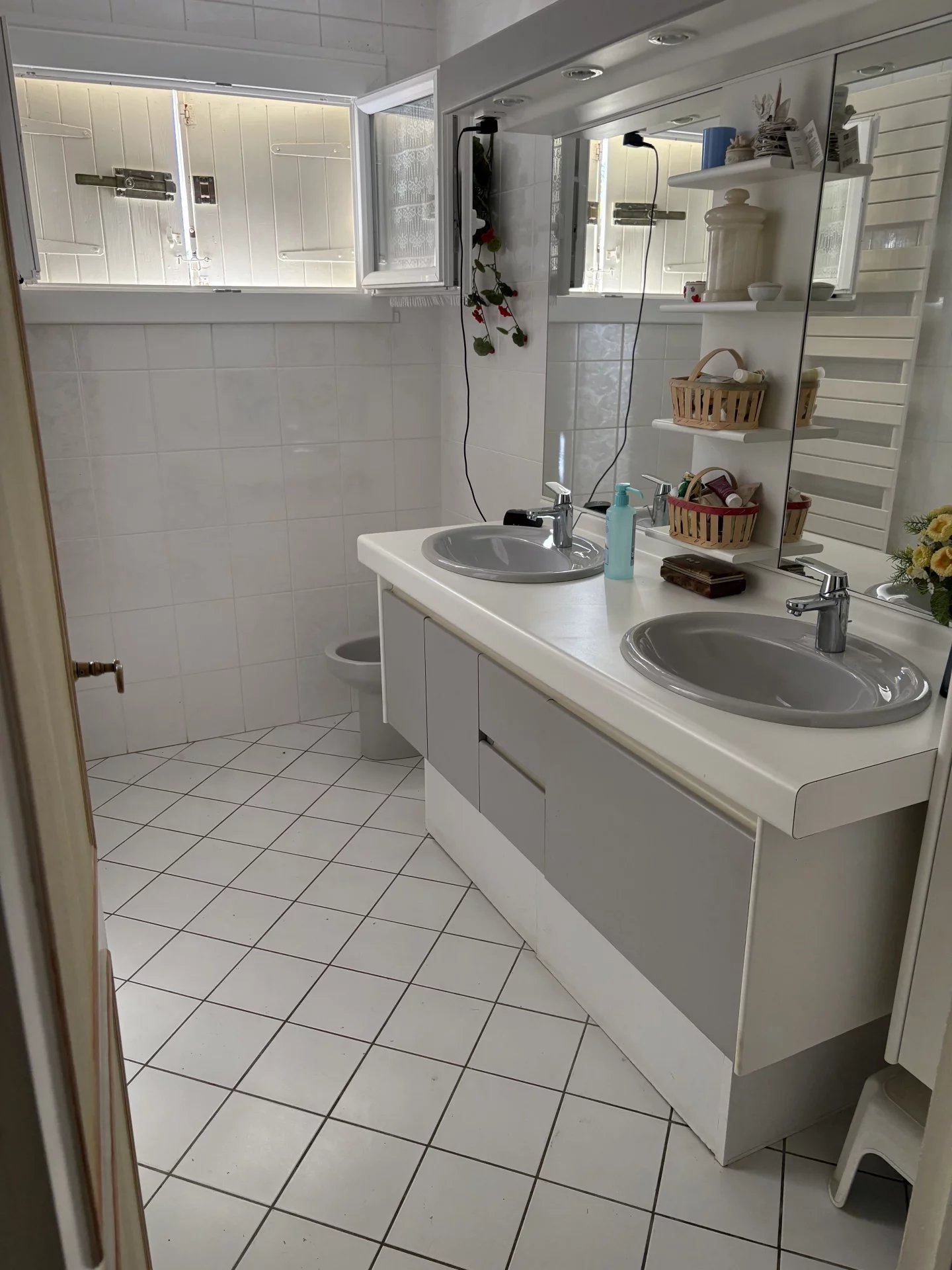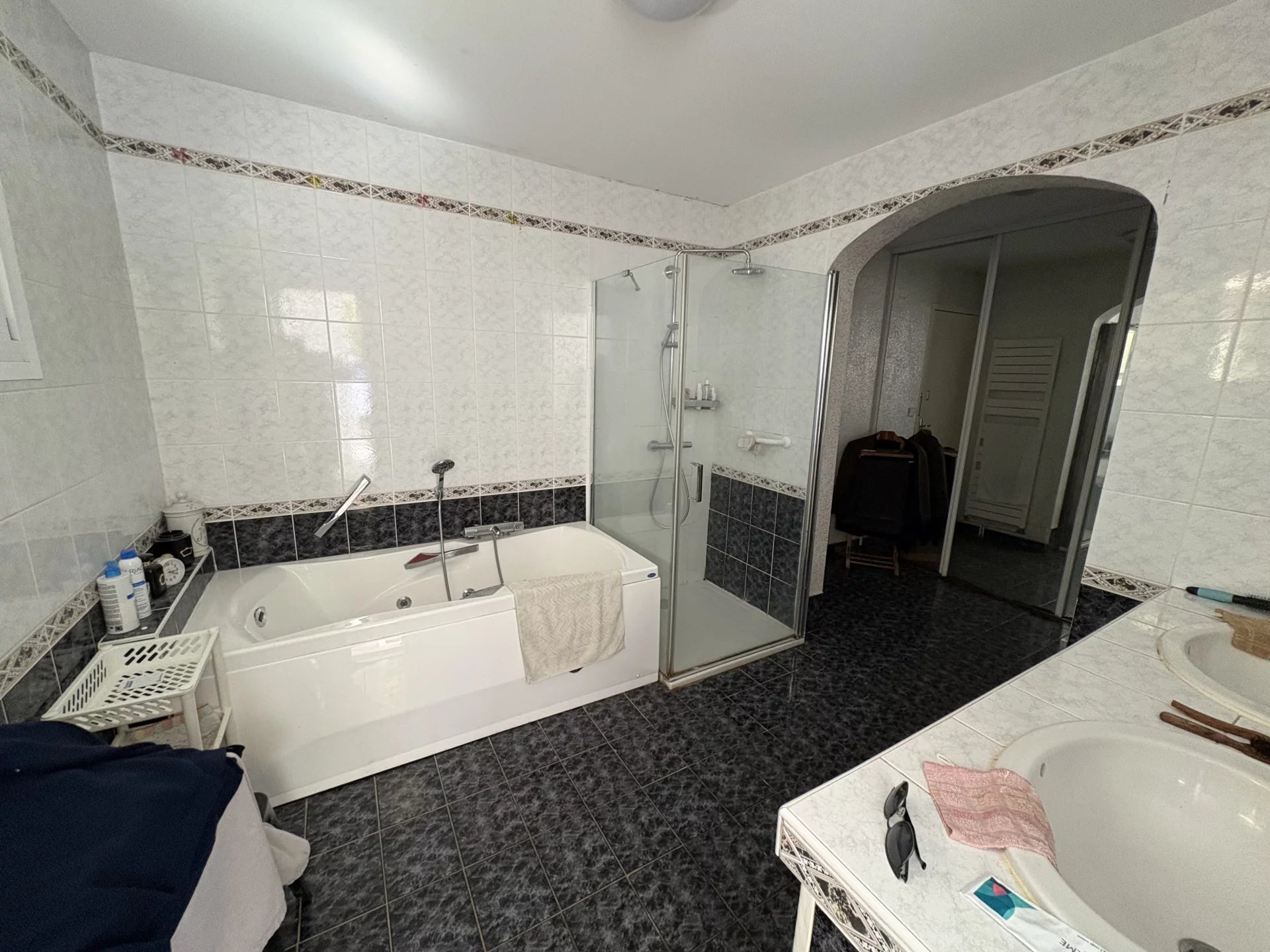4°- Piscine au sel (coque en résine changée été 2025) avec sa terrasse carrelée autour.
